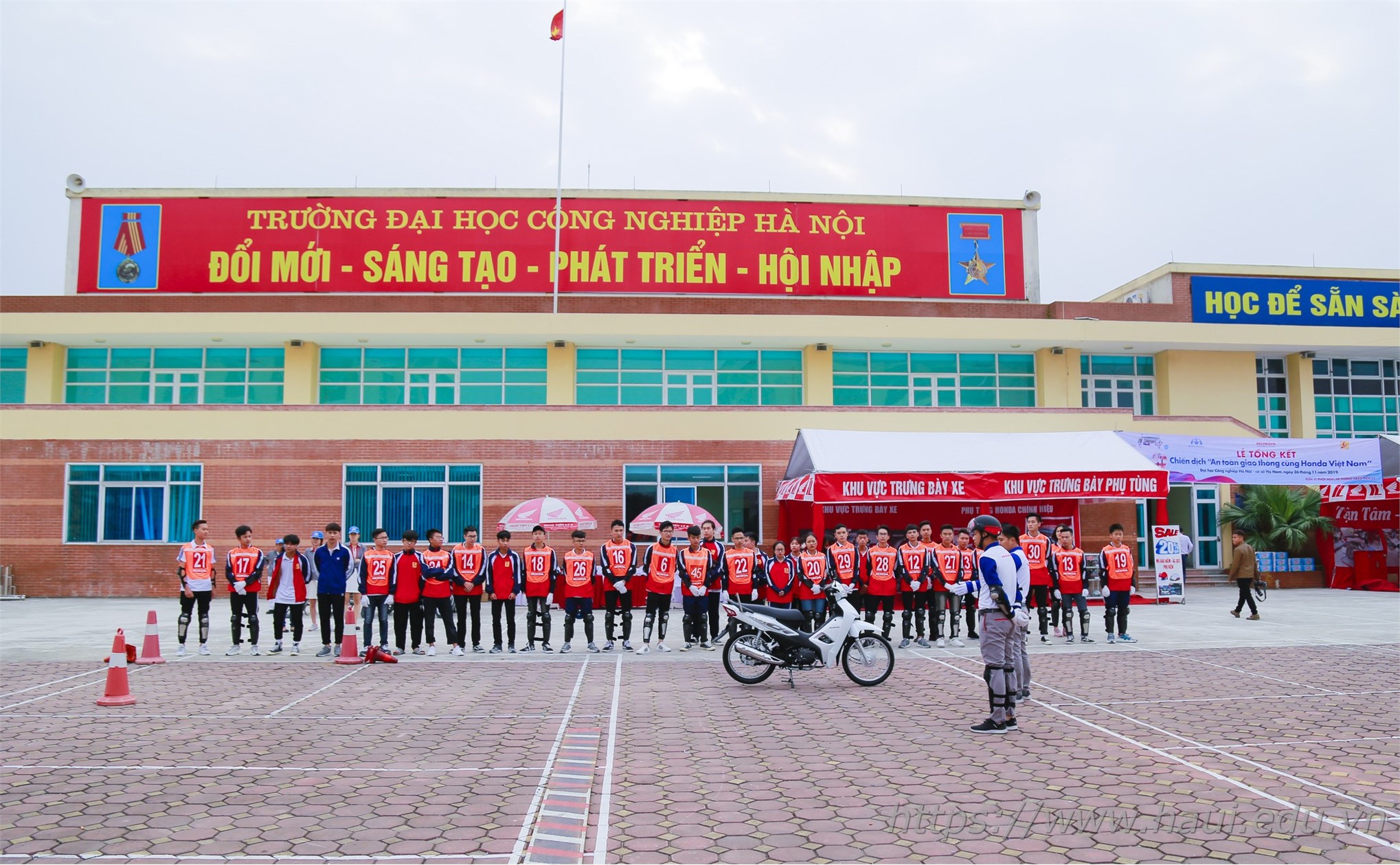Sáng ngày 26/11/2019, trường Đại học Công nghiệp Hà Nội phối hợp với Ban An toàn Giao thông tỉnh Hà Nam và công ty Honda Việt Nam tổ chức khóa tập huấn kiến thức và kỹ năng lái xe an toàn cho gần 600 sinh viên K14 tại cơ sở đào tạo Hà Nam. TS. Nguyễn Anh Tuấn - Phó Hiệu trưởng nhà trường tham dự sự kiện.