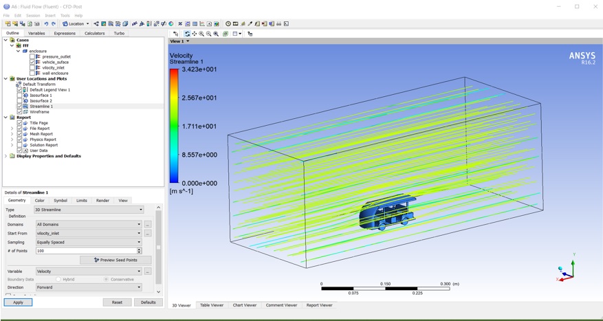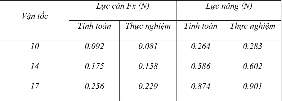 Để kiểm chứng độ tin cậy và độ chính xác của mô hình tính toán lý thuyết bằng phần mềm ANSYS - Fluent, nhóm đã thực hiện nghiên cứu khí động học mô hình vỏ xe thu nhỏ tỷ lệ 1:20 trong ống khí động. Các thí nghiệm được tiến hành với các vận tốc 10,14 và 17 m/s, kết quả thu được giá trị trung bình của hệ số cản là Cd = 0.482. Đồng thời, nhóm đã thực hiện mô phỏng mô hình vỏ xe trong ống khí động bằng Fluent với các thông số và điều kiện giống hệt như khi thí nghiệm.