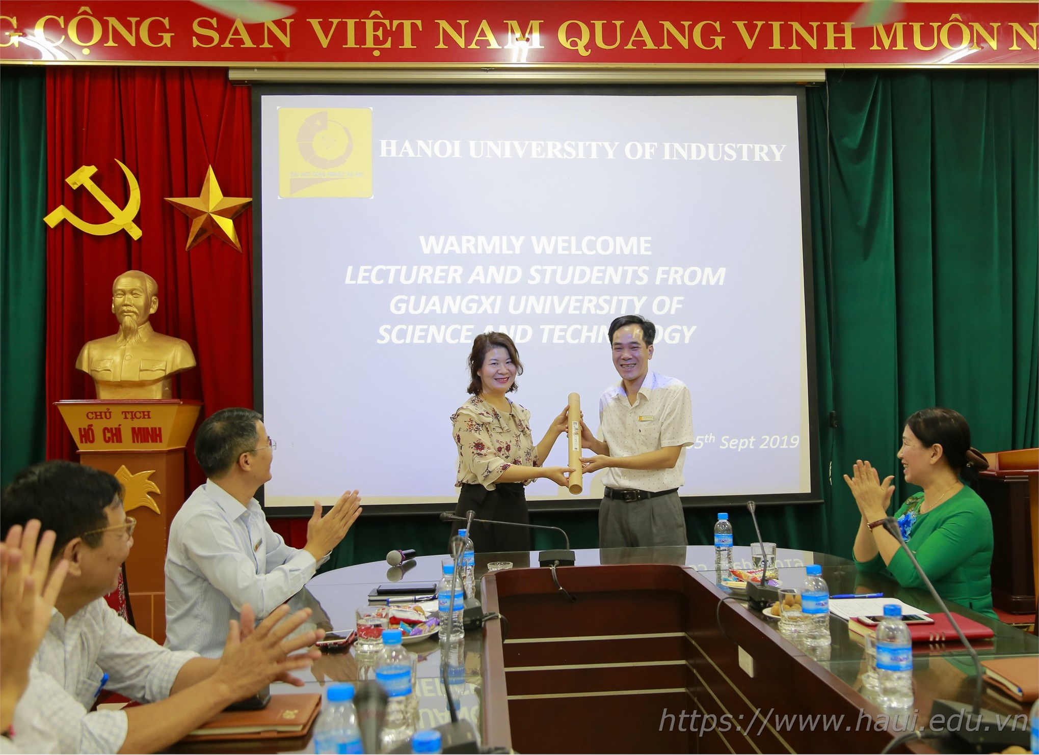 Chiều ngày 05/9/2019, Trường Đại học Công nghiệp Hà Nội tổ chức buổi gặp mặt chào đón 18 sinh viên chuyên ngành Ngôn ngữ Anh thuộc Viện Ngôn ngữ, Trường Đại học Khoa học Kỹ thuật Quảng Tây đến tham gia chương trình trao đổi sinh viên năm học 2019 - 2020.