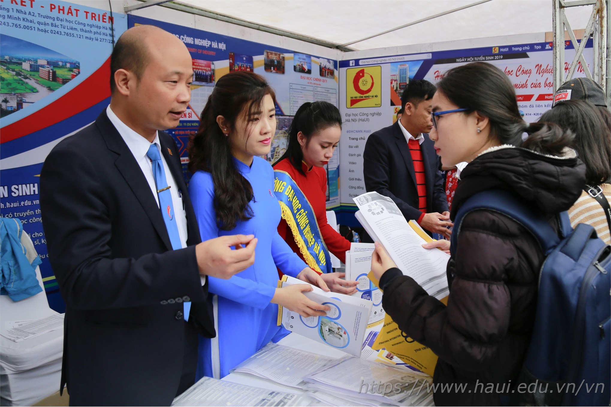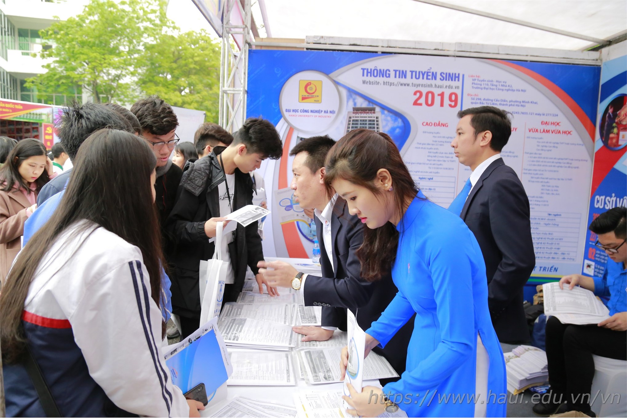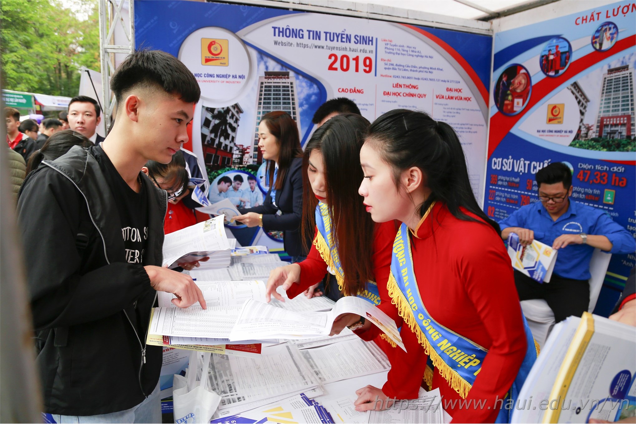 - Hotline: 08.3456.0255; Fanpage: facebook.com/tuyensinh.haui