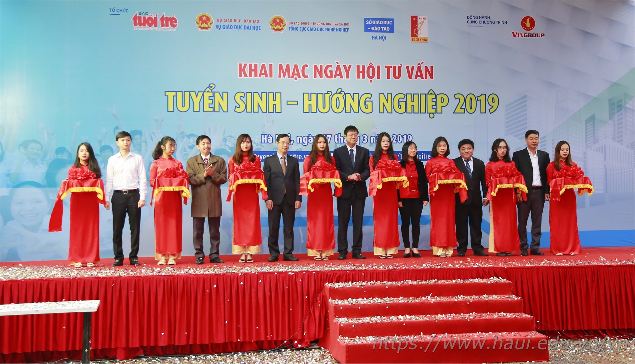 Thứ trưởng Bộ GD-ĐT Lê Hải An cùng các đại biểu cắt băng Khai mạc Ngày hội tư vấn Tuyển sinh - Hướng nghiệp 2019