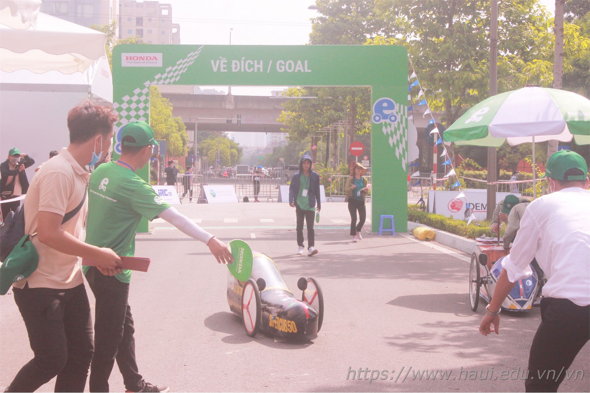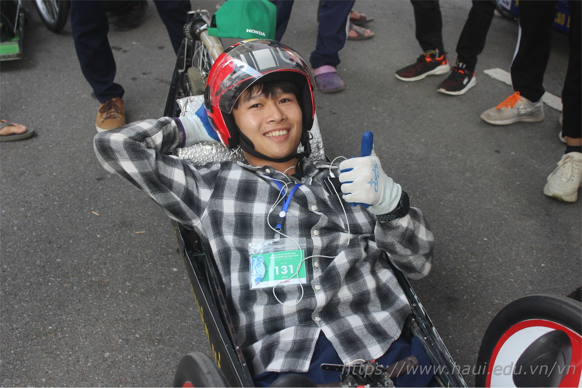 Không giấu nổi cảm xúc khi nghe tên Đại học Công nghiệp Hà Nội đạt giải vô địch, bạn Đồng Đức Huy - sinh viên Khoa Công nghệ Ô tô, người giữ trọng trách điều khiển xe tham dự cuộc thi lần này chia sẻ: Tuy đã được tập luyện, chạy thử nhiều lần, nhưng bước vào cuộc thi đấu chính thức hôm nay, em cũng có chút hồi hộp, lo lắng. Em chỉ nhắc bản thân, phải bình tĩnh, thi đấu hết sức để mang chiến thắng về cho cả đội, bõ công những ngày tháng thầy trò vất vả nghiên cứu, chế tạo xe.