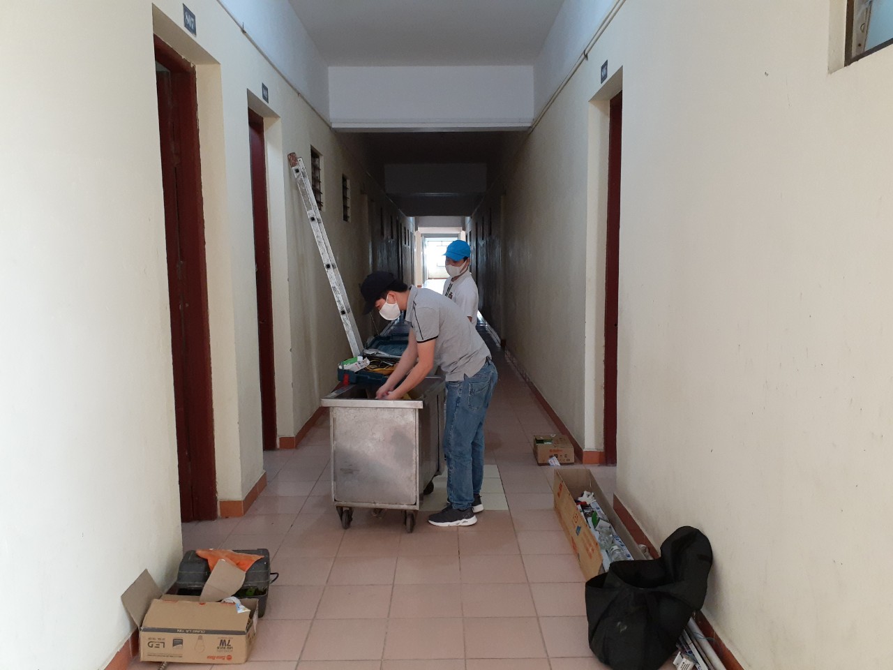 Nhân viên sửa chữa, nâng cấp hệ thống điện, nước tại ký túc xá