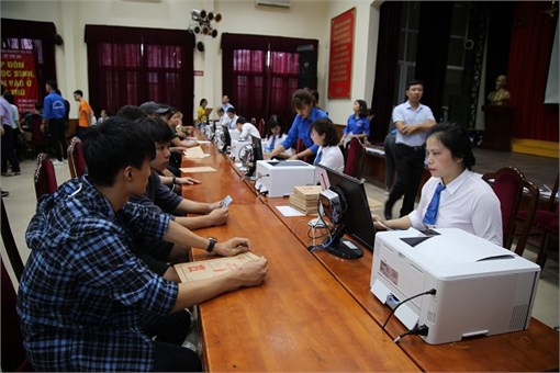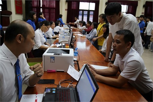 Tân sinh viên háo hức đến làm thủ tục xác nhận nhập học tại Đại học Công nghiệp Hà Nội