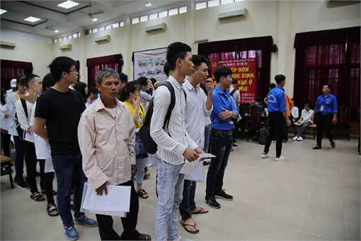 Tân sinh viên đến làm thủ tục từ sáng sớm
