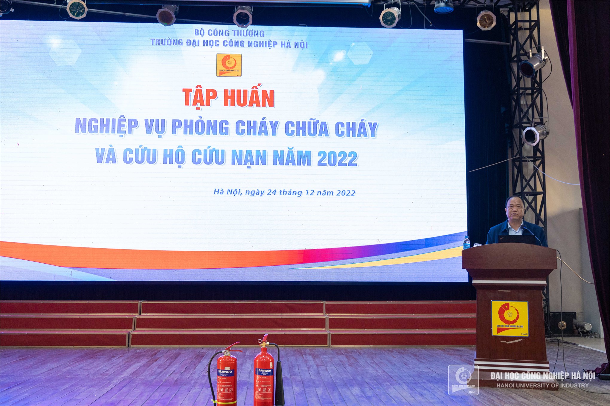 Nhấn mạnh tầm quan trọng của công tác tập huấn nghiệp vụ, phương án PCCC & CHCN, TS.Nguyễn Văn Thiện – Phó Hiệu trưởng Nhà trường cho biết: Buổi tập huấn hôm nay nhằm mục đích tuyên truyền, phổ biến kiến thức pháp luật về PCCC, nâng cao nhận thức về quyền và trách nhiệm của mỗi cán bộ, giảng viên, sinh viên trong việc bảo đảm an toàn PCCC.