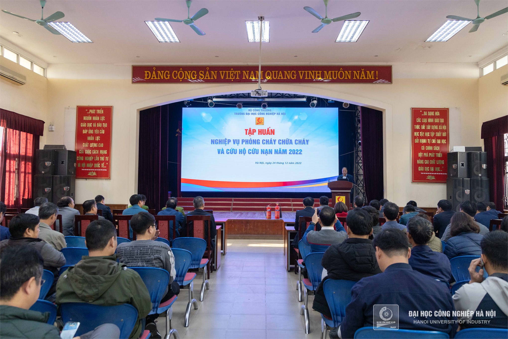 Tham dự buổi tập huấn có đại diện công an PCCC&CHCN quận Bắc Từ Liêm, trưởng, phó các đơn vị, một số giảng viên, sinh viên, thành viên Đội PCCC tại cơ sở 1 và 2 của Trường Đại học Công nghiệp Hà Nội.