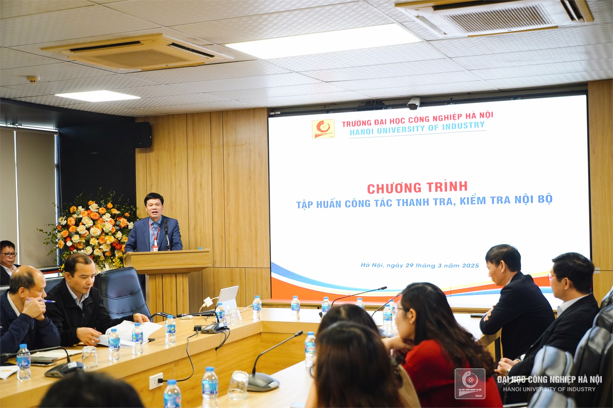 Ngày 29/03/2025, Trường Đại học Công nghiệp Hà Nội (HaUI) tổ chức tập huấn nghiệp vụ thanh tra, kiểm tra nội bộ trong nhà trường với sự tham gia của 82 viên chức, người lao động thuộc các đơn vị trong toàn trường.