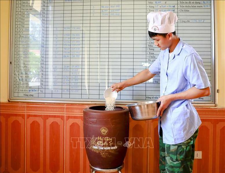 Tại Đồn Biên phòng Mường Mươn (huyện Mường Chà, tỉnh Điện Biên), trước mỗi giờ nấu cơm, chiến sĩ lại bớt một bát gạo để cho vào “Hũ gạo Chiến sĩ”