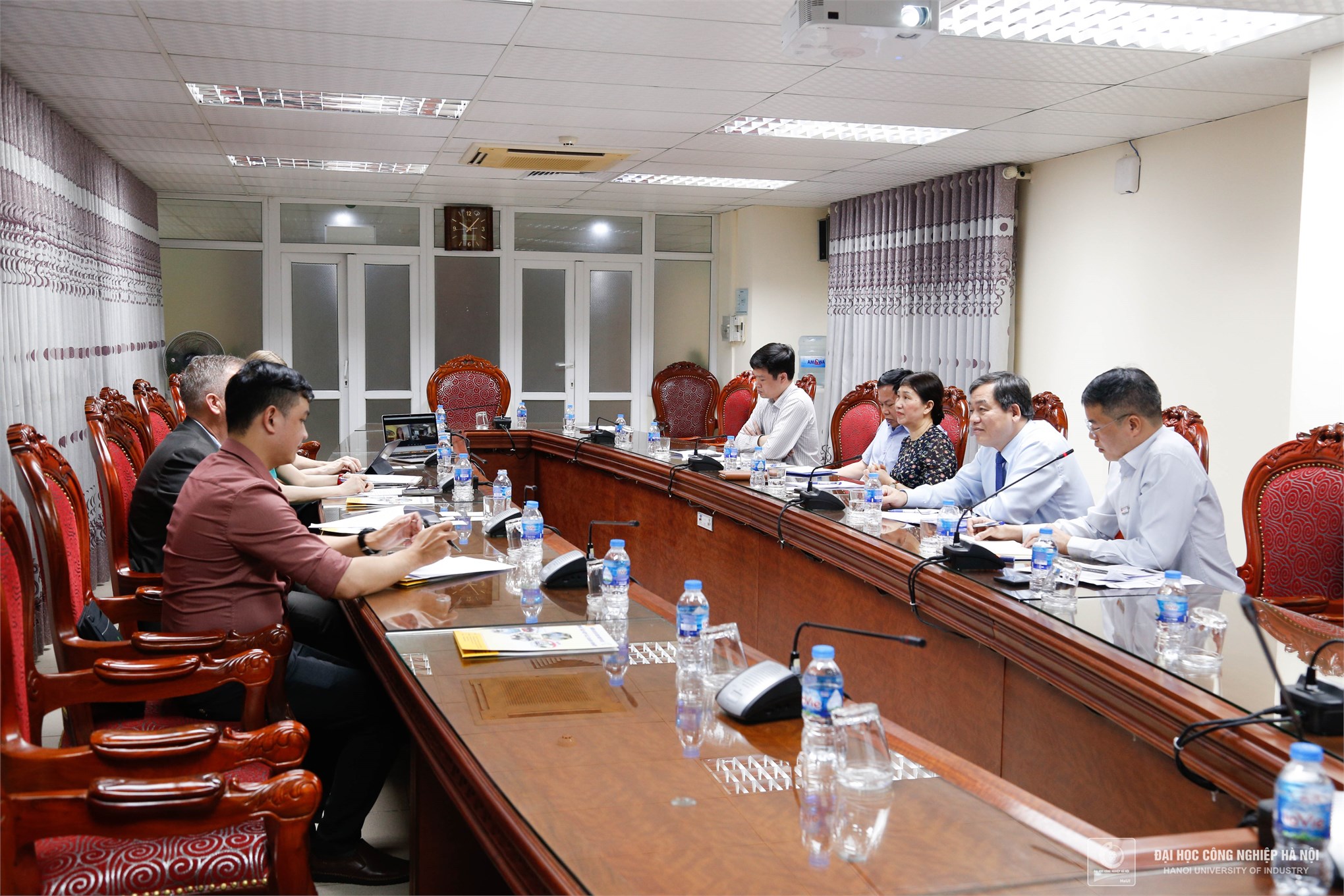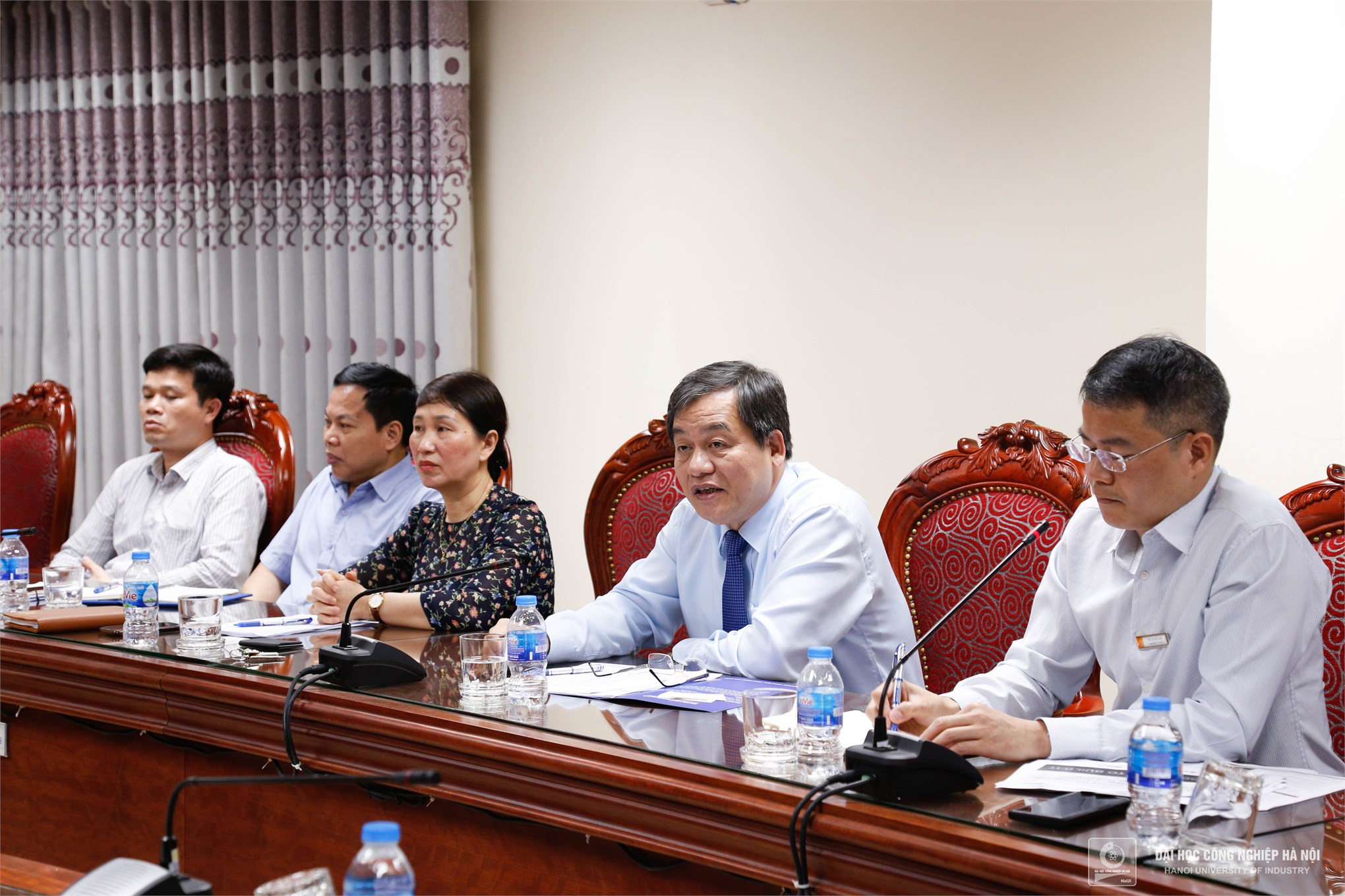 Tại buổi làm việc, PGS.TS. Trần Đức Quý - Hiệu trưởng nhà trường đã giới thiệu tổng quan và những thành tựu quan trọng mà Đại học Công nghiệp Hà Nội đã đạt được trong thời gian qua. Trong nhiều năm trở lại đây, Đại học Công nghiệp Hà Nội đã đổi mới phương pháp dạy - học theo hướng kết hợp phương pháp truyền thống và dạy học trực tuyến; áp dụng chuẩn CDIO trong phát triển các chương trình đào tạo; ứng dụng mạnh mẽ ICT vào giảng dạy và các quá trình quản lý đào tạo. Hệ thống đại học điện tử áp dụng phương thức quản trị hiện đại với các giải pháp thông minh như thiết lập các hệ hỗ trợ ra quyết định nhằm giải quyết các bài toán khó trong đào tạo, xử lý yêu cầu của sinh viên; ứng dụng trí tuệ nhân tạo và xử lý dữ liệu lớn…