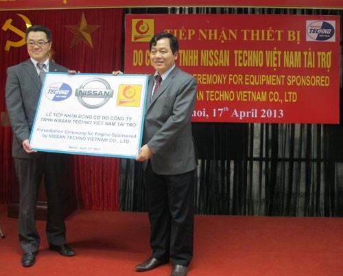 Chiều 17/4/2013, nhà trường đã tổ chức tiếp nhận thiết bị do Công ty Nisan Techno Việt Nam tài trợ gồm 02 động cơ ô tô trị giá khoảng 300 triệu VNĐ.
