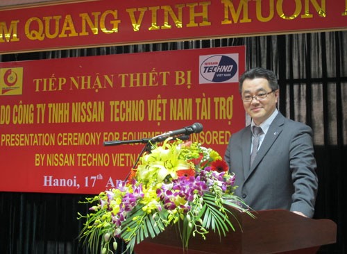 Phát biểu tại buổi lễ, Hiệu trưởng nhà trường cảm ơn Lãnh đạo Công ty Nisan Techno Việt Nam đã tài trợ thiết bị cho trường và cam kết sẽ sử dụng đúng mục đích, khai thác hiệu quả các thiết bị vào việc giảng dạy cho sinh viên ngành Ô tô cũng như thực hiện tốt các công tác bảo dưỡng, hướng tới mục tiêu nâng cao chất lượng nguồn nhân lực kỹ thuật.