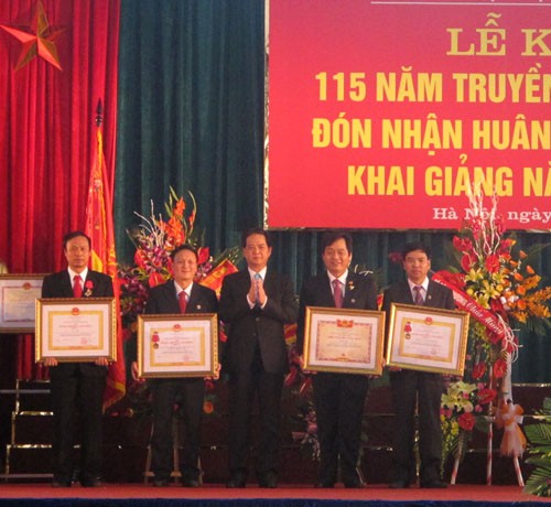 Với những nỗ lực không ngừng của tập thể cán bộ, giáo viên, HSSV nhà trường trong 115 năm qua, tại buổi lễ trang trọng này, Thủ trướng Nguyễn Tấn Dũng đã trao tặng nhà trường Huân chương Hồ Chí Minh. Cũng tại buổi lễ này, Thủ tướng Chính phủ đã trao tặng Huân chương Lao động hạng Ba của Chủ tịch nước cho phòng Công tác học sinh sinh viên, Công ty TNHH một thành viên Đào tạo và Cung ứng nhân lực - HaUI và ông Hạ Bá Tiến - Trưởng phòng Công tác HSSV vì đã có thành tích xuất sắc trong công tác từ năm 2008 – 2012, góp phần vào sự nghiệp xây dựng CNXH và bảo vệ Tổ quốc; trao tặng danh hiệu Chiến sỹ thi đua toàn quốc cho TS. Trần Đức Quý - Hiệu trưởng nhà trường.