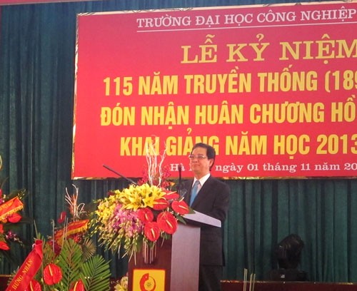 Phát biểu tại buổi lễ, thay mặt Chính phủ, Thủ tướng Nguyễn Tấn Dũng đã chúc mừng nhà trường, các thầy, giáo, cô giáo, cán bộ, viên chức, HSSV và đánh giá cao các kết quả, thành tích nhà trường đã đạt được trong nhiều năm qua.