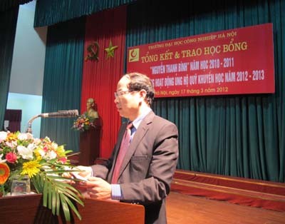 Đại diện Ban vận động Quỹ khuyến học, ông Hà Xuân Quang - Trưởng ban, Phó Hiệu trưởng nhà trường tổng kết hoạt động quỹ khuyến học năm học 2010-2011 và phương hướng hoạt động ủng hộ quỹ khuyến học năm học 2012-2013.