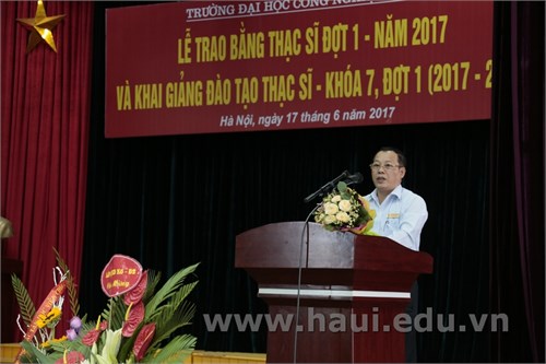 Phát biểu tại buổi lễ. TS. Nguyễn Anh Tuấn - Phó Hiệu trưởng Nhà trường chúc mừng và đánh giá cao kết quả mà các tân Thạc sĩ, tân học viên cao học đã đạt được, đồng thời cho biết thêm những năm gần đây, Nhà trường đã đạt được những thành công nhất định, không ngừng nâng cao chất lượng dạy học, nghiên cứu khoa học tại trường, tạo thế và lực mới đưa Trường Đại học Công nghiệp Hà Nội trở thành một trong những địa chỉ giáo dục uy tín, được xã hội công nhận về đào tạo nguồn nhân lực chất lượng cao, đáp ứng nhu cầu và yêu cầu thực tiễn.
