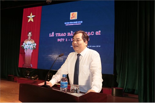 PGS.TS. Trần Đức Quý - Hiệu trưởng Nhà trường phát biểu tại Lễ trao bằng Thạc sĩ