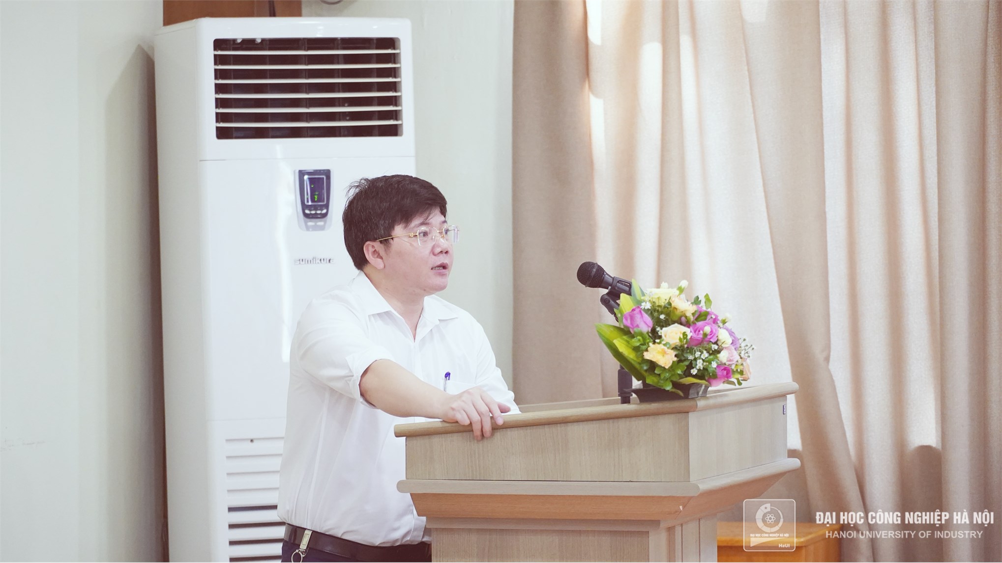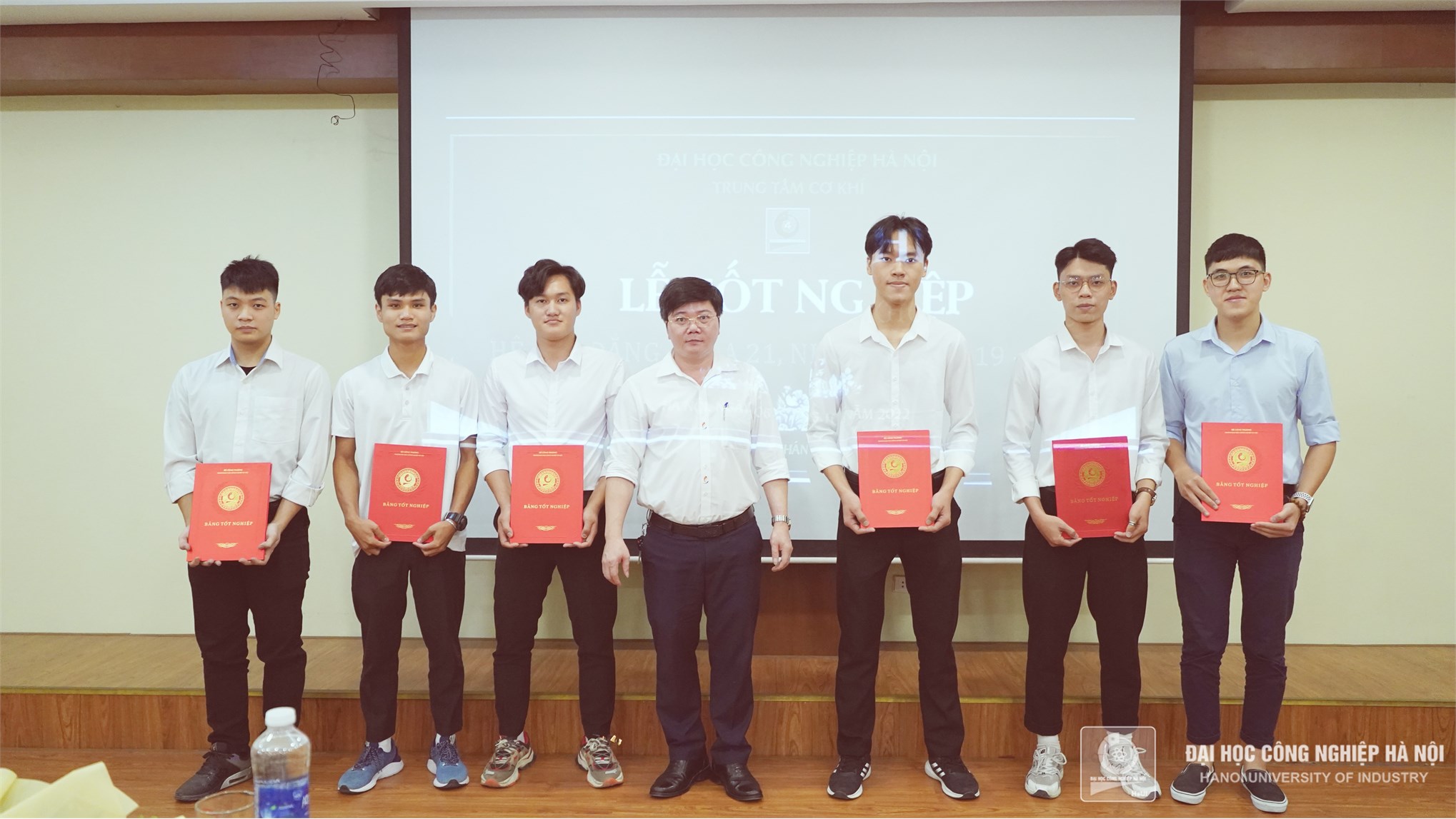PGS.TS.Nguyễn Hồng Sơn – Giám đốc Trung tâm Cơ khí phát biểu tại lễ trao bằng Tốt nghiệp. Thầy Sơn chia sẻ: Hôm nay chỉ là bước khởi đầu cho một chặng đường dài phía trước, thầy cô ở Trung tâm và Trường Đại học Công nghiệp Hà Nội chúc các em vững vàng, thành công trong những bước đường tiếp theo.