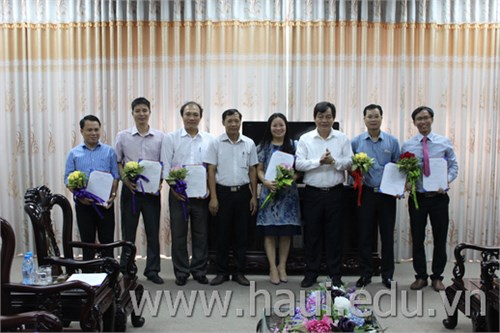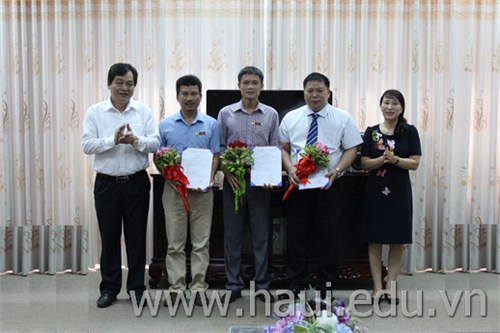 Trao quyết định bổ nhiệm mới cho PGS.TS Trần Đức Quý - Hiệu trưởng Nhà trường kiêm nhiệm vị trí Tổng biên tập Tạp chí Khoa học & Công nghệ Trường Đại học Công nghiệp Hà Nội; bà Vũ Thị Hồng Vân giữ chức vụ Trưởng khoa Lý luận Chính trị - Pháp luật; ông Phùng Danh Cường giữ chức vụ Phó Trưởng khoa Lý luận Chính trị - Pháp luật; ông Hoàng Mạnh Kha giữ chức vụ Phó Trưởng khoa Điện tử; ông Nguyễn Văn Tăng giữ chức vụ Phó viện trưởng Viện Công nghệ - HaUI và ông Đỗ Văn Hưng giữ chức vụ Phó Trưởng phòng Quản trị.