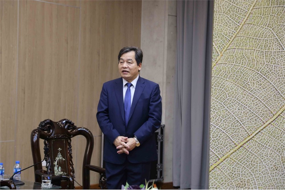PGS.TS. Trần Đức Quý - Bí thư Đảng ủy, Hiệu trưởng Nhà trường phát biểu chúc mừng, giao nhiệm vụ cho cán bộ quản lý vừa được bổ nhiệm, bổ nhiệm lại và giao nhiệm vụ mới