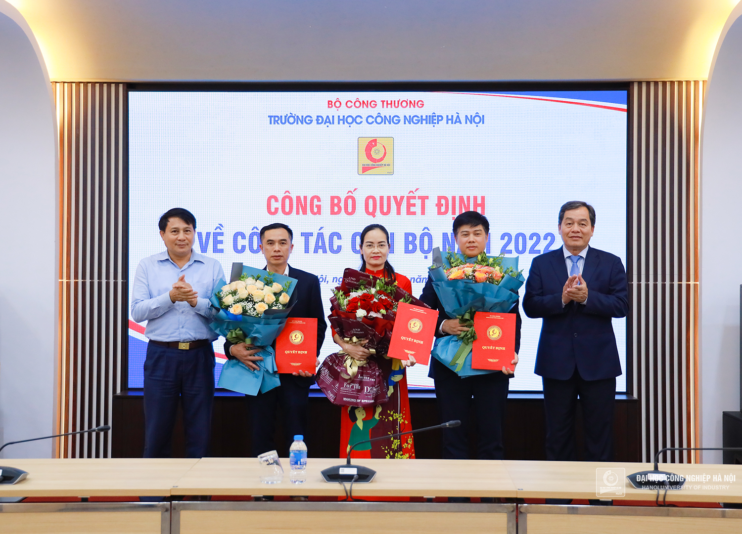 Chiều ngày 08/6/2022, Đại học Công nghiệp Hà Nội tổ chức công bố và trao Quyết định bổ nhiệm chức danh Phó Giáo sư đối với 3 nhà giáo và bổ nhiệm, bổ nhiệm lại cho 3 viên chức quản lý.
