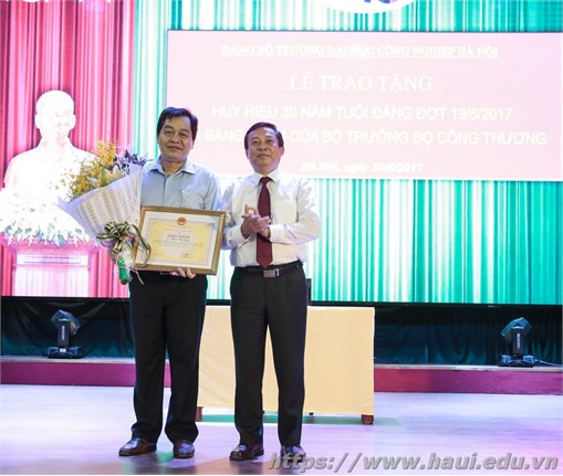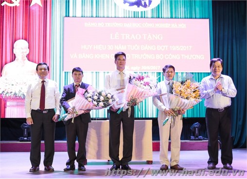 Đảng bộ tổ chức lễ trao tặng Huy hiệu 30 năm tuổi đảng cho 3 đảng viên ưu tú là đồng chí Phạm Văn Minh, đồng chí Nguyễn Quang Huy và đồng chí Phạm Sơn. Đồng chí Trịnh Huy Thành – Bí thư Đảng ủy khối Công nghiệp Hà Nội trao Huy hiệu 30 năm tuổi đảng cho các đảng viên. Phát biểu tại buổi lễ, đồng chí Trịnh Huy Thành chúc mừng các đảng viên vinh dự được nhận Bằng khen của Bộ trưởng Bộ Công Thương và Huy hiệu 30 năm tuổi đảng; đồng chí khẳng định: Đảng, Nhà nước ghi nhận sự trưởng thành, những cống hiến của các đồng chí với Đảng, với sự nghiệp giáo dục nói chung và với ĐHCNHN nói riêng. Bí thư mong rằng: được nhận Bằng khen và Huy hiệu 30 năm tuổi đảng, các đồng chí đảng viên sẽ tiếp tục nỗ lực phấn đấu, hoàn thành tốt nhiệm vụ trên cương vị được giao, đóng góp nhiều hơn nữa cho nhà trường, cho Đảng, cho đất nước.