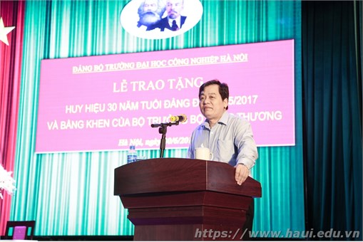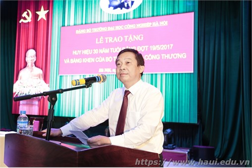 Chiều ngày 30/6/2017, Đảng bộ Trường Đại học Công nghiệp Hà Nội (ĐHCNHN) tổ chức trao tặng Bằng khen của Bộ trưởng Bộ Công Thương, Huy hiệu 30 năm tuổi đảng cho đảng viên thuộc đảng bộ nhà trường và Hội nghị sơ kết công tác Đảng 6 tháng đầu năm và phương hướng, nhiệm vụ công tác 6 tháng cuối năm 2017. Dự trao tặng Bằng khen và Huy hiệu Đảng có đồng chí Trịnh Huy Thành-Bí thư đảng ủy Khối Công nghiệp Hà Nội, đồng chí Nguyễn Hồng Quang-Phó Chánh Văn phòng Đảng ủy Khối Công nghiệp Hà Nội và 598 đảng viên thuộc đảng bộ Trường ĐHCNHN. PGS.TS.Trần Đức Quý - Bí thư Đảng ủy, Hiệu trưởng nhà trường chủ trì Hội nghị.
