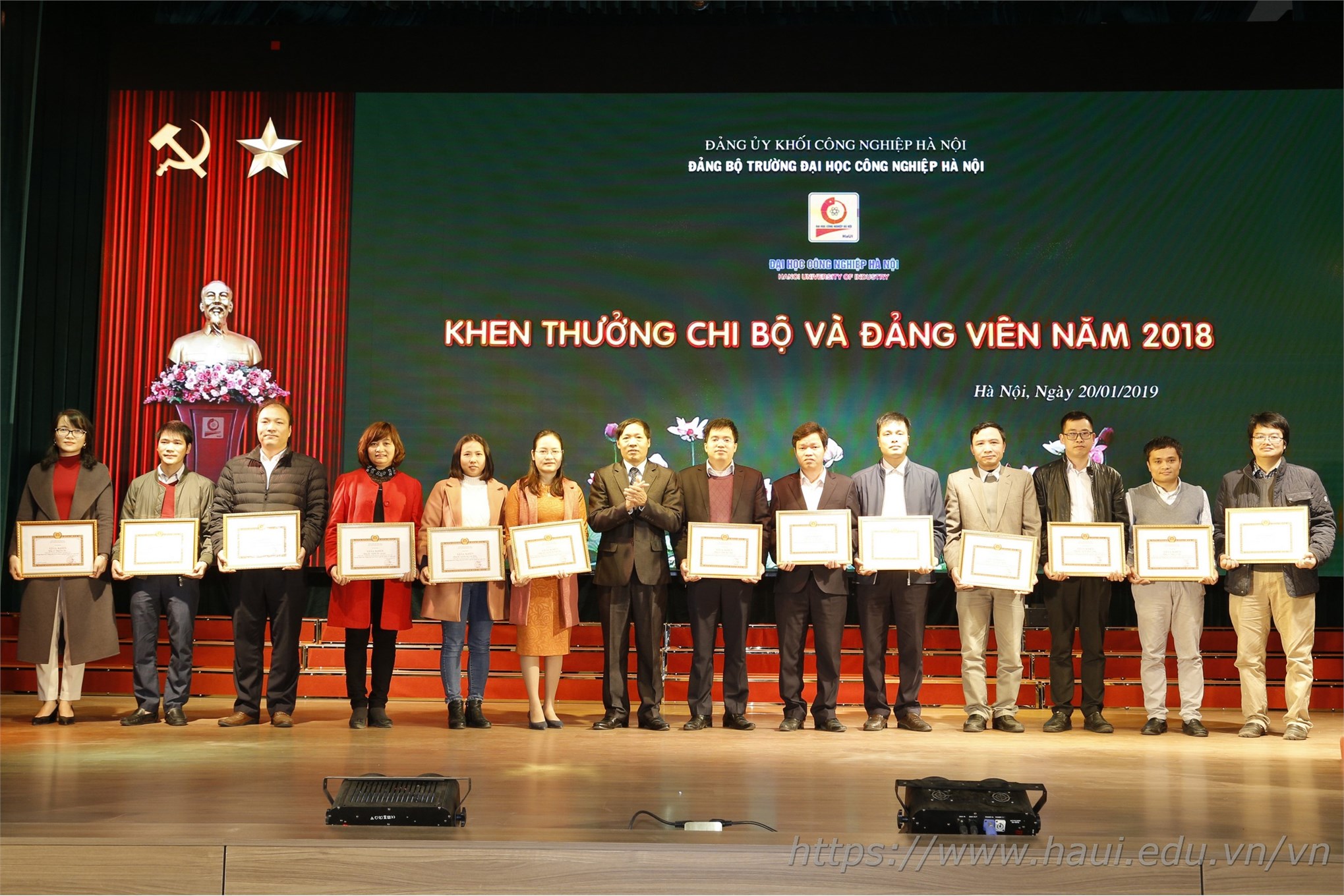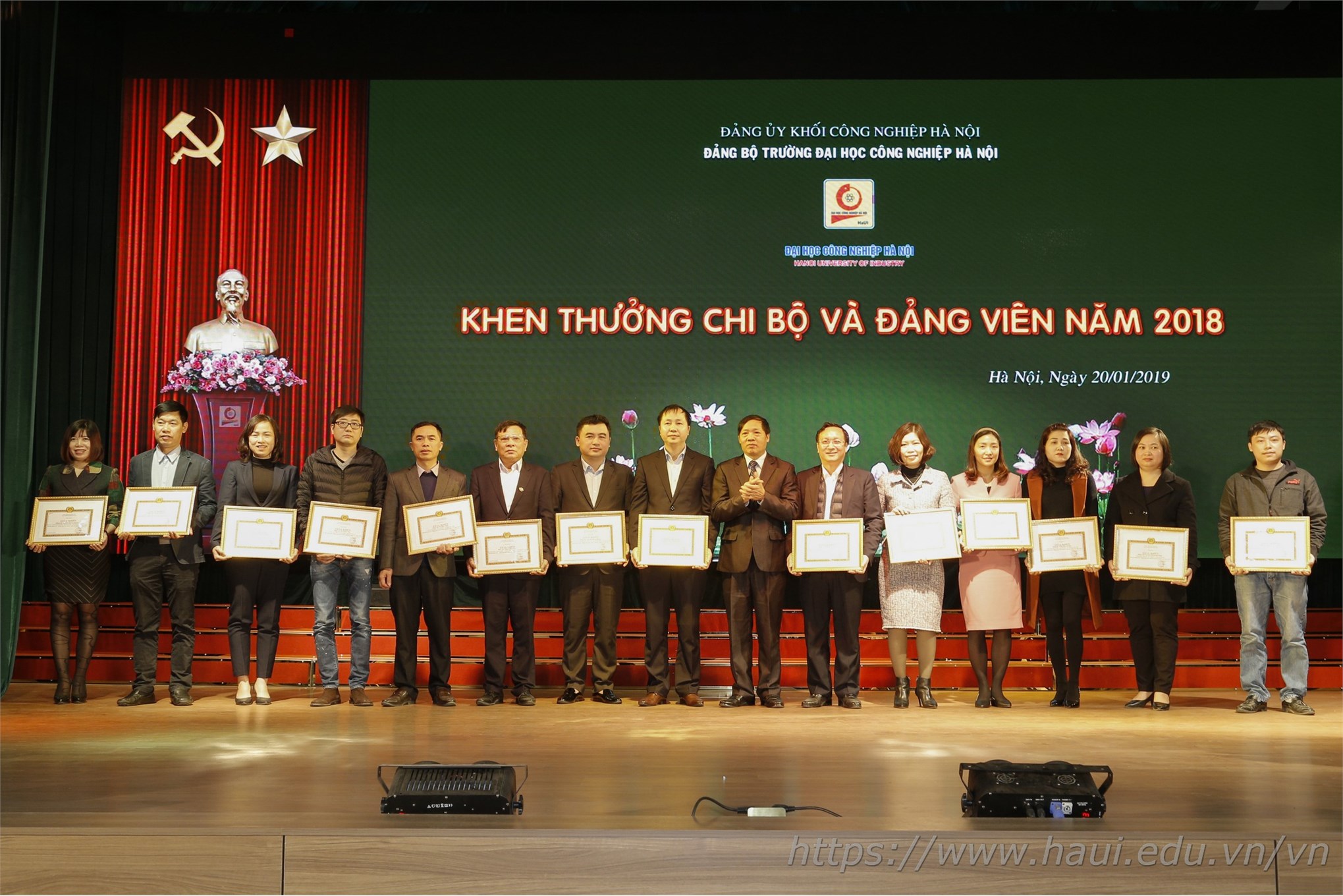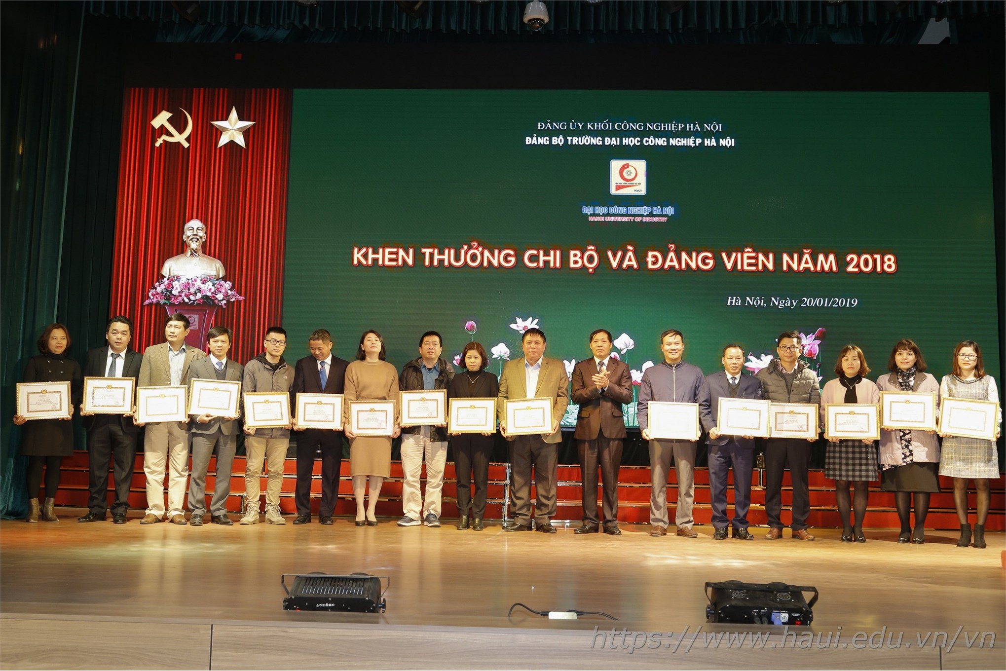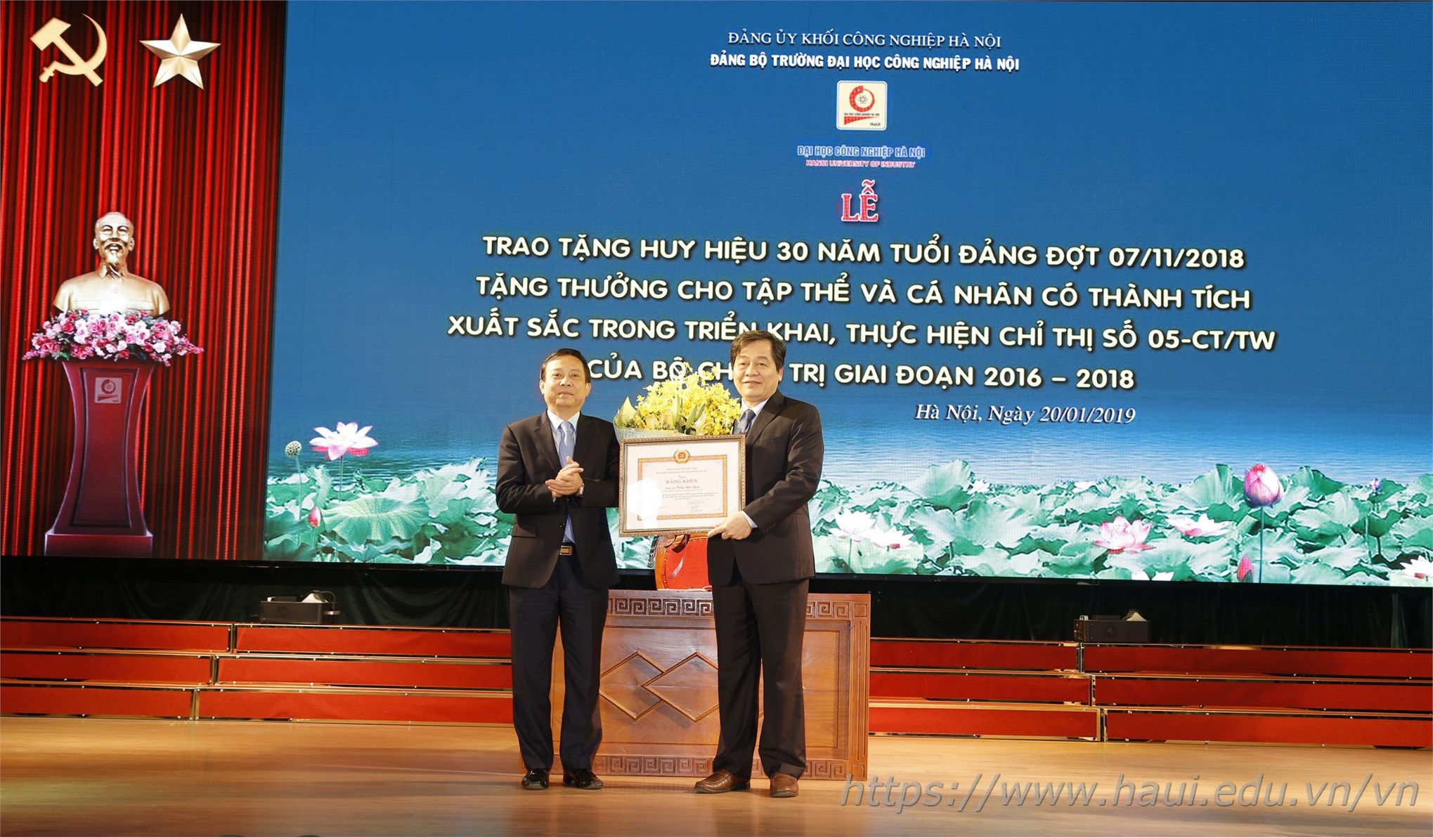 Sáng ngày 20/01/2019, Đảng bộ trường Đại học Công nghiệp Hà Nội đã long trọng tổ chức “Lễ trao tặng Huy hiệu 30 năm tuổi Đảng, tặng thưởng cho tập thể và cá nhân có thành tích xuất sắc thực hiện Chỉ thị số 05-CT/TW giai đoạn 2016-2018; Khen thưởng chi bộ, đảng viên năm 2018; tổng kết công tác Đảng 6 tháng cuối năm 2018 và triển khai nhiệm vụ 6 tháng đầu năm 2019”.