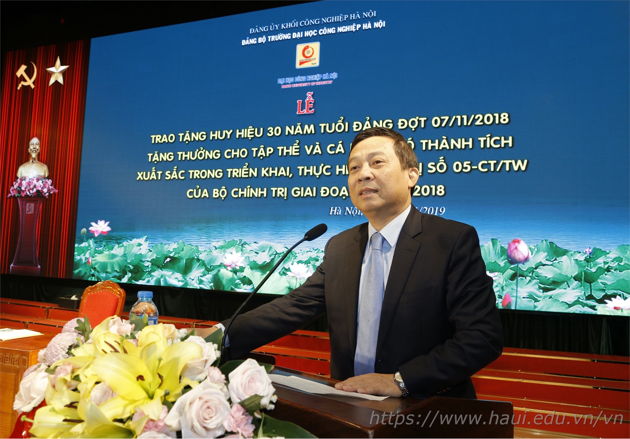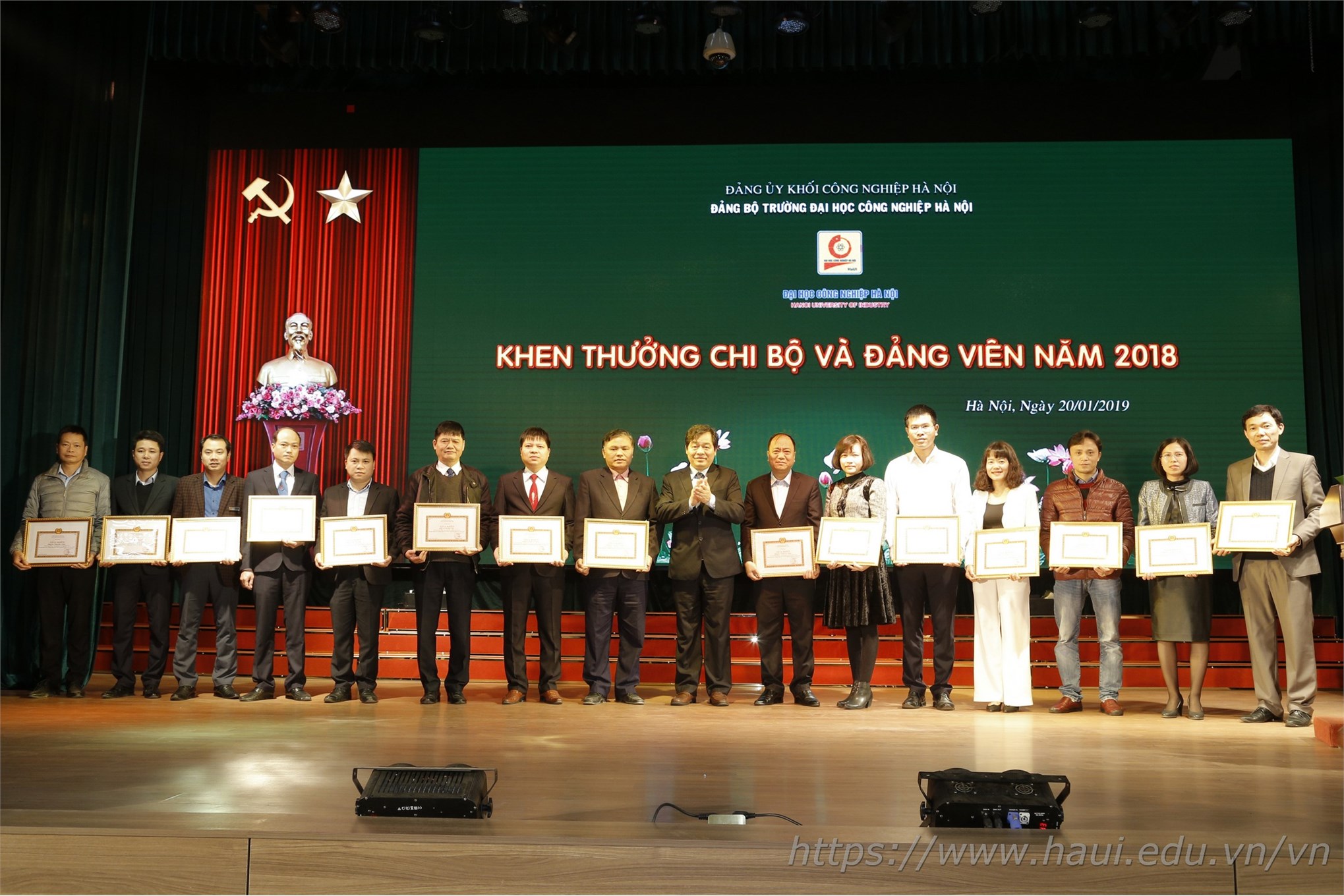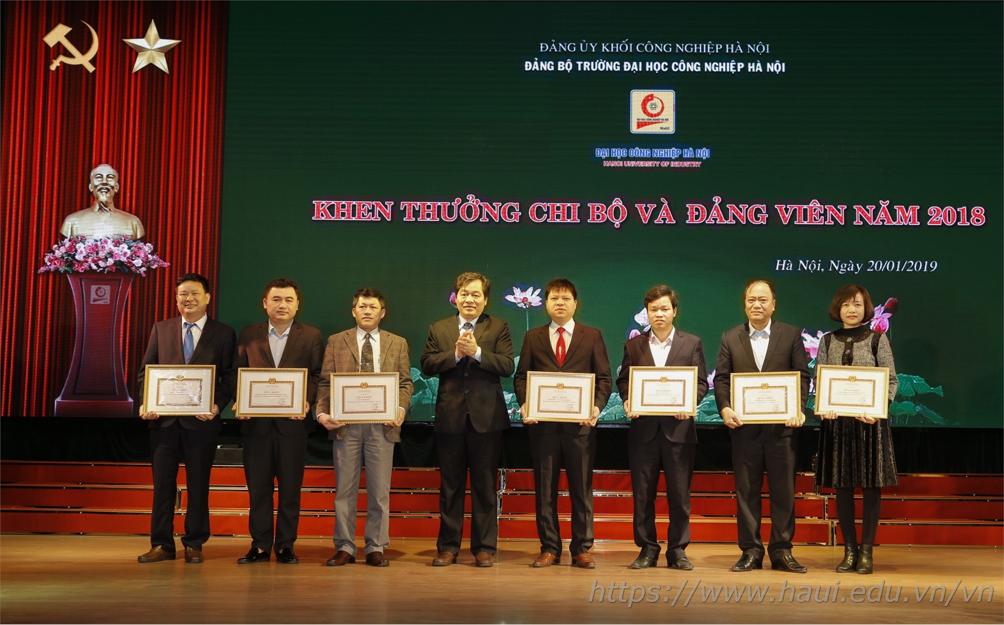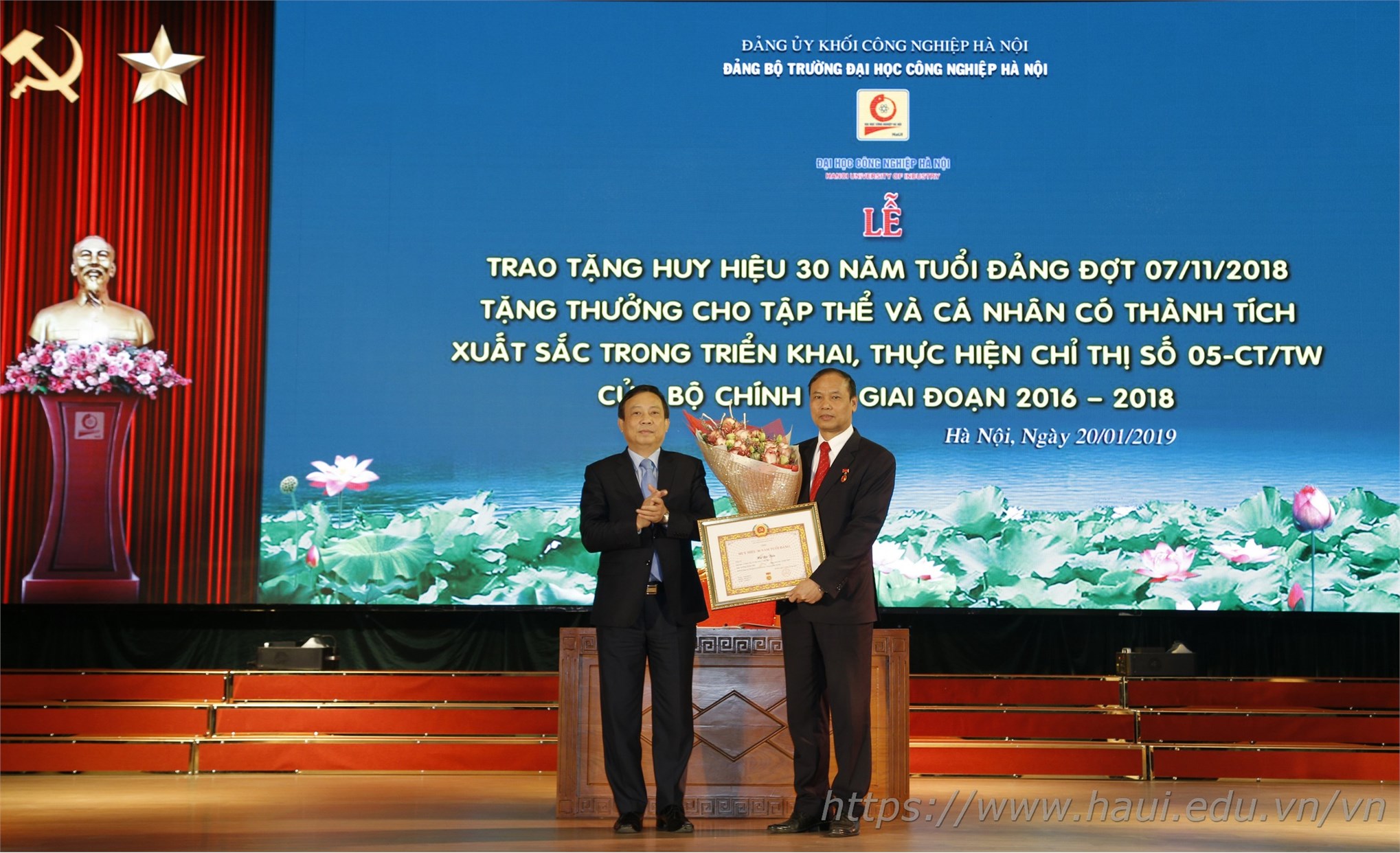 Sáng ngày 20/01/2019, Đảng bộ trường Đại học Công nghiệp Hà Nội đã long trọng tổ chức “Lễ trao tặng Huy hiệu 30 năm tuổi Đảng, tặng thưởng cho tập thể và cá nhân có thành tích xuất sắc thực hiện Chỉ thị số 05-CT/TW giai đoạn 2016-2018; Khen thưởng chi bộ, đảng viên năm 2018; tổng kết công tác Đảng 6 tháng cuối năm 2018 và triển khai nhiệm vụ 6 tháng đầu năm 2019”.