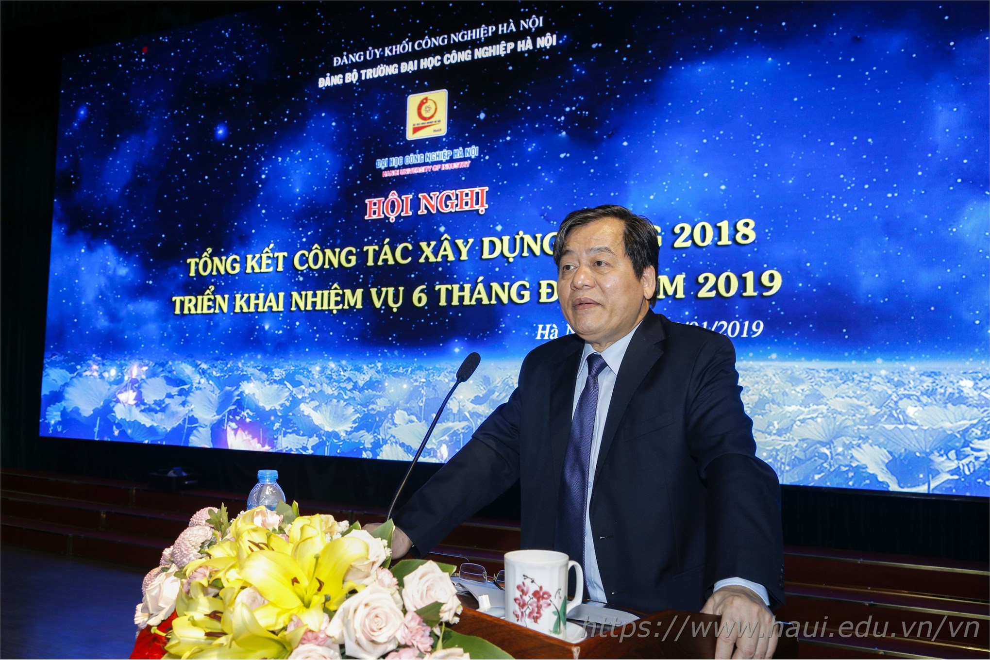 Đồng chí Trần Đức Quý - Bí thư Đảng ủy, Hiệu trưởng Nhà trường đã tổng kết công tác xây dựng Đảng năm 2018, triển khai kế hoạch năm 2019. Theo Báo cáo, trong 6 tháng cuối năm 2018, Đảng bộ Nhà trường đã tổ chức lãnh đạo các nhiệm vụ trọng tâm: Hoàn thành chỉ tiêu tuyển sinh năm học 2018 -2019, tiếp tục triển khai đổi mới giáo dục đại học (xây dựng chương trình CDIO, quản trị Nhà trường theo mô hình Đại học Điện tử,...); Tổ chức Lễ kỷ niệm 120 năm ngày truyền thống Nhà trường; Tổ chức Hội nghị CCVC và Tổng kết năm học 2017 - 2018 từ cấp đơn vị đến Nhà trường với các nội dung phù hợp, nhận được sự đồng thuận của toàn thể cán bộ, giảng viên nhà trường.