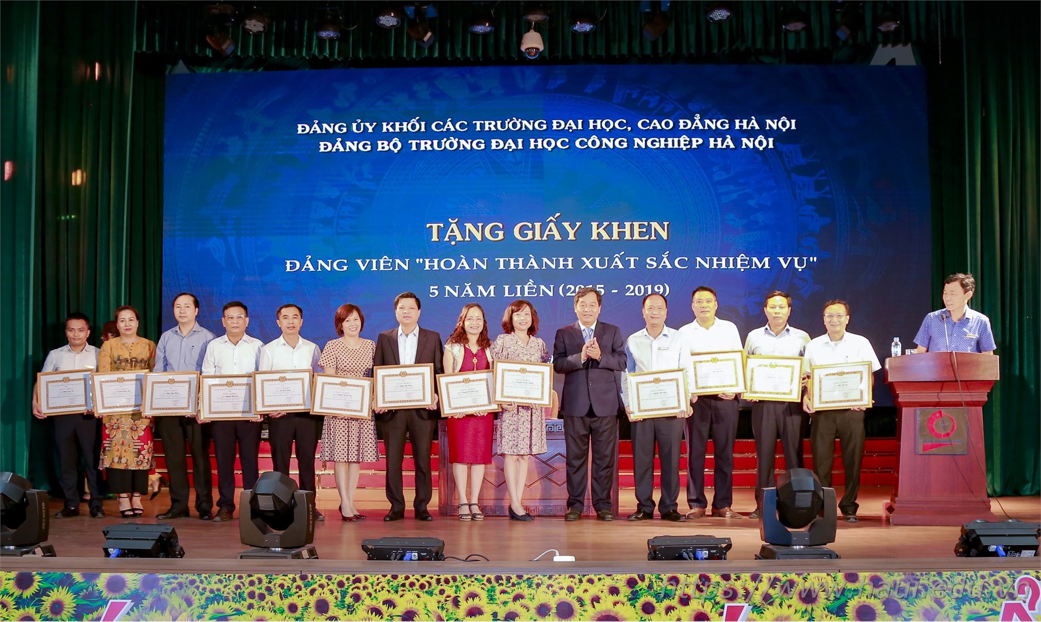 Thay mặt Đảng ủy Khối các trường Đại học, Cao đẳng Hà Nội, đồng chí Trần Đức Quý - Bí thư Đảng ủy, Hiệu trưởng nhà trường đã trao tặng, khen thưởng 13 cá nhân hoàn thành xuất sắc nhiệm vụ 5 năm liền (2015 - 2019).