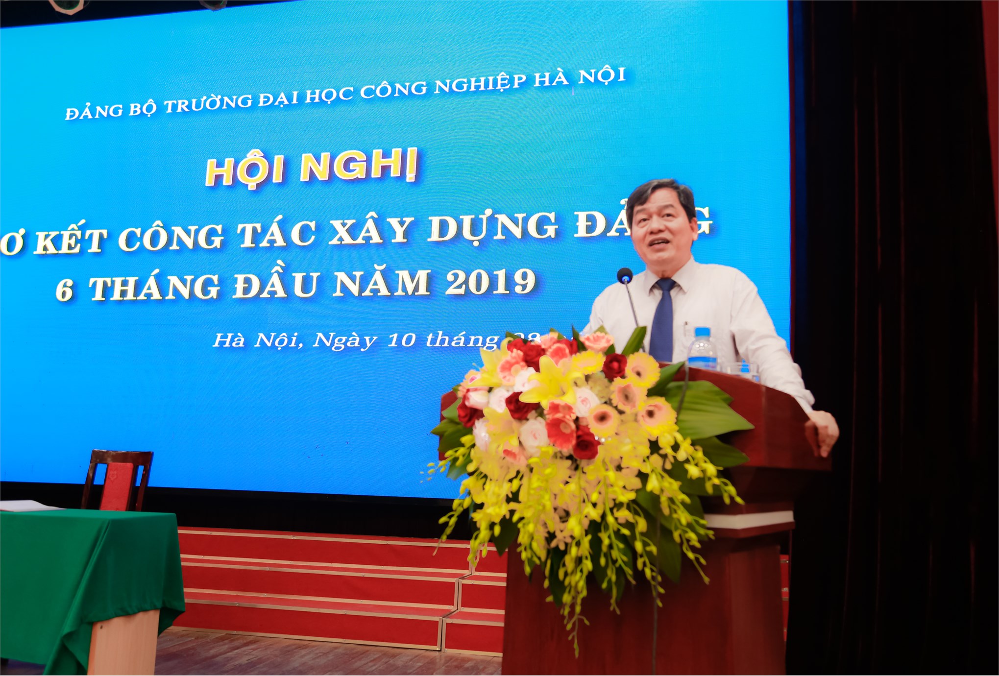 Đồng chí Trần Đức Quý - Bí thư Đảng ủy, Hiệu trưởng Nhà trường đã tổng kết công tác thực hiện Nghị quyết 6 tháng đầu năm 2019 và đề ra nhiệm vụ trọng tâm công tác 6 tháng cuối năm 2019.