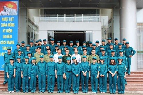 Chụp ảnh lưu niệm với Ban chỉ huy quân sự Nhà trường
