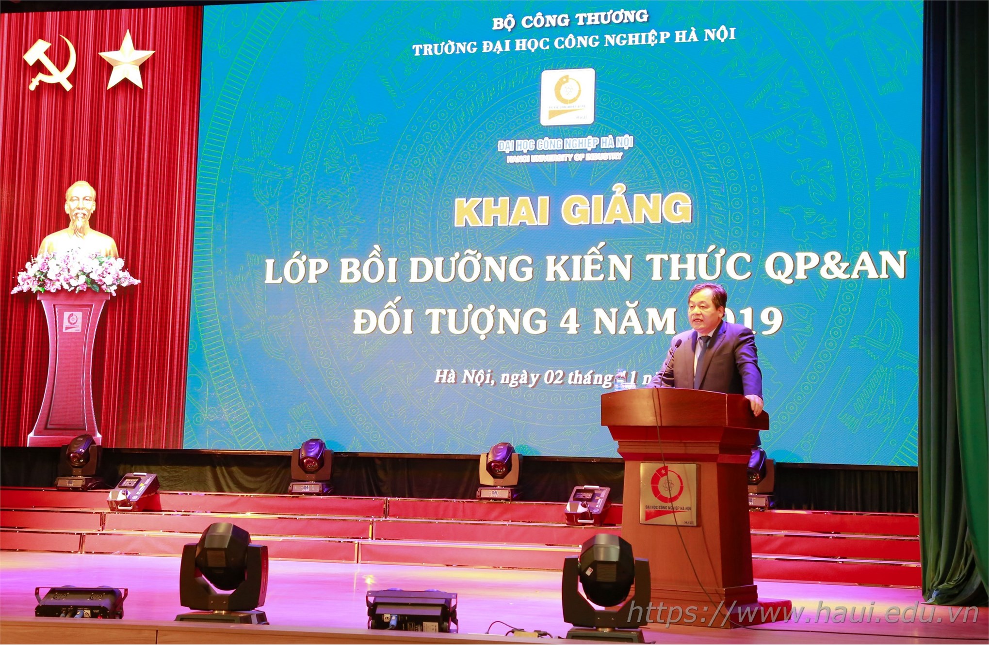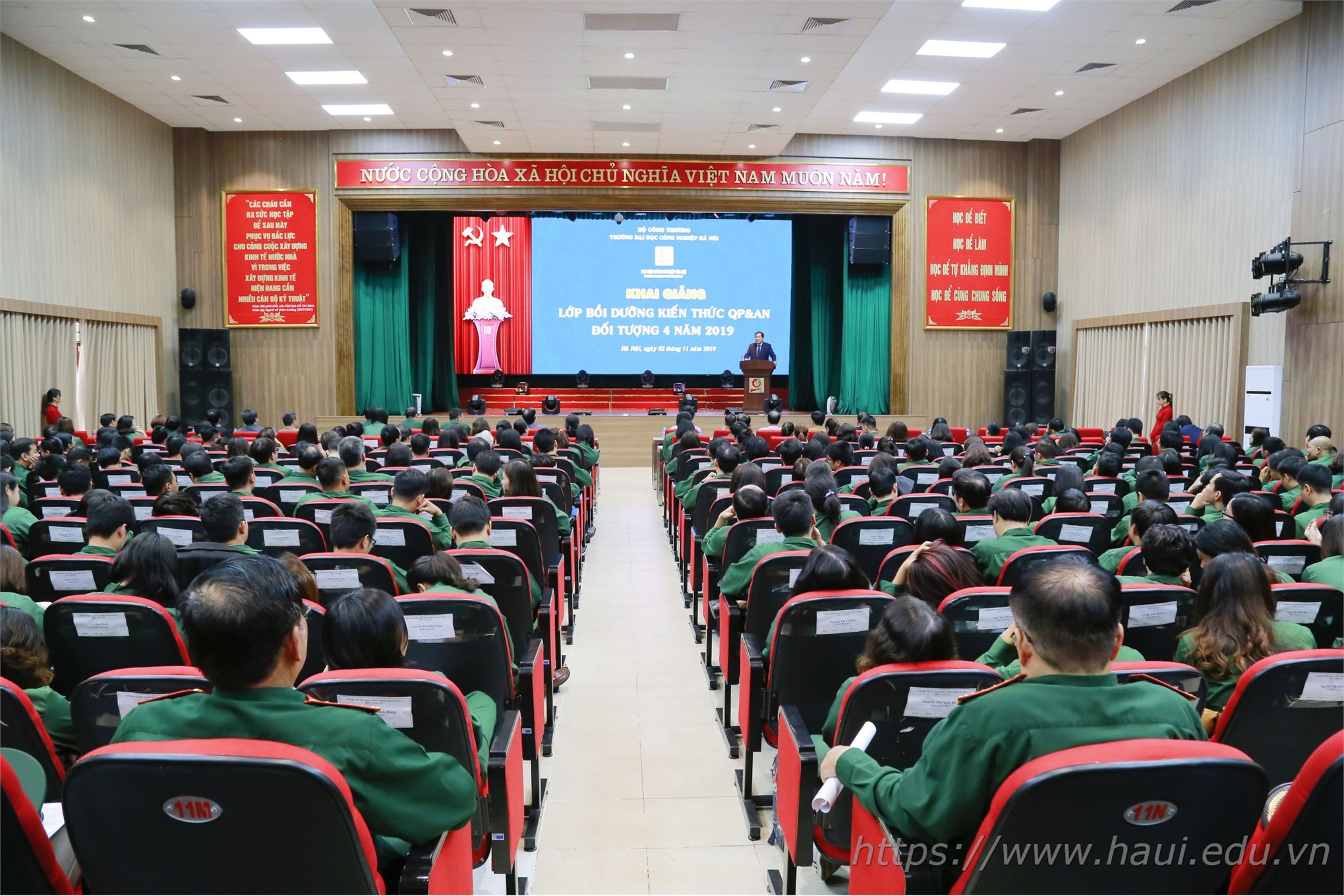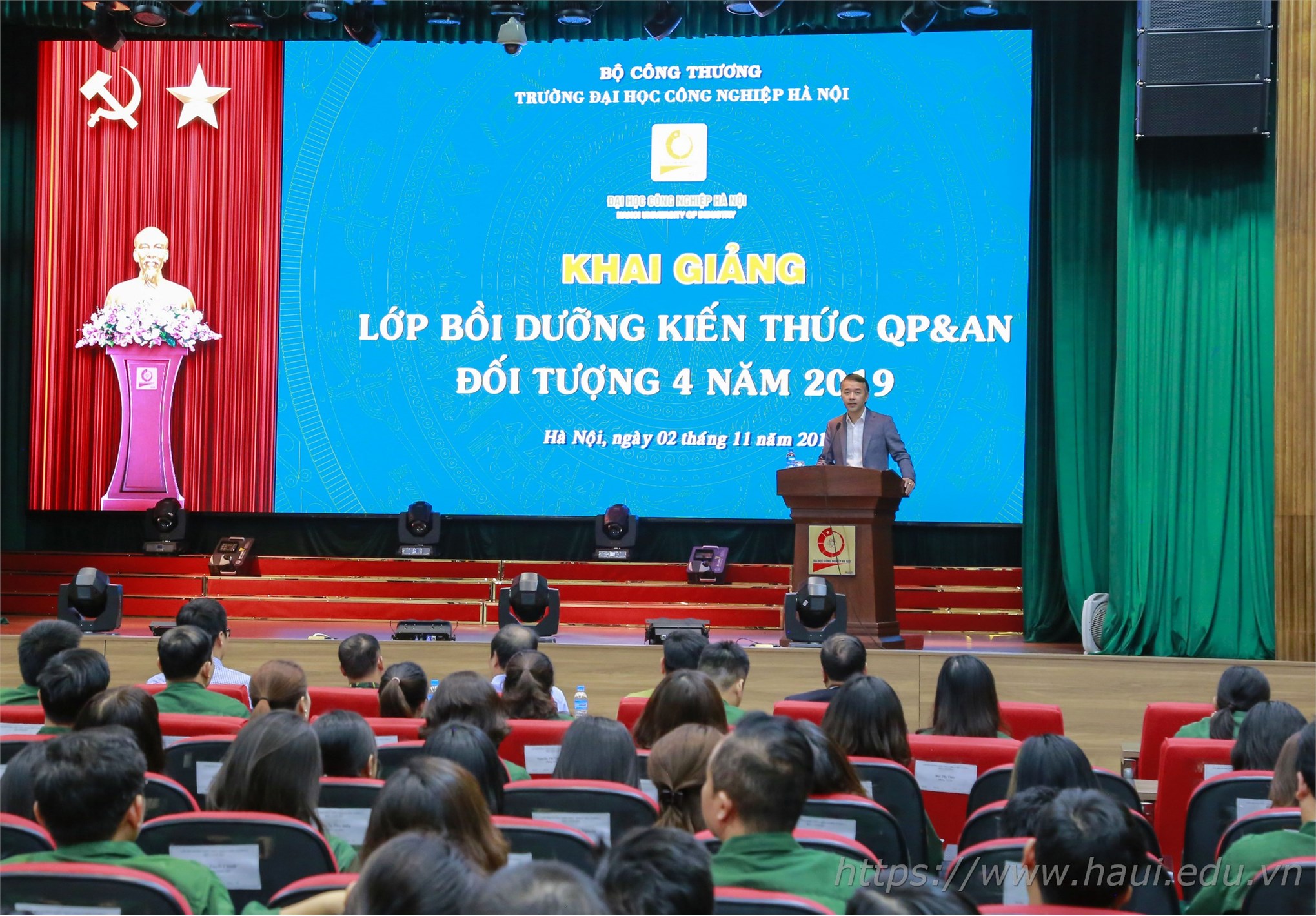 Sáng ngày 02/11/2019, trường Đại học Công nghiệp Hà Nội tổ chức Khai giảng Lớp bồi dưỡng kiến thức Quốc phòng và An ninh cho 257 học viên là cán bộ, giảng viên, đảng viên của Trường thuộc đối tượng 4.