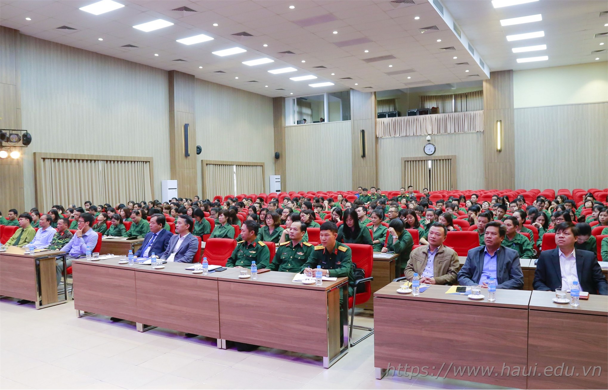 Dự khai giảng có đồng chí Hoàng Bắc - Chỉ huy phó Ban Chỉ huy Quân sự (CHQS) Bộ Công Thương, Thượng tá Phùng Văn Tuệ - Bộ Tư lệnh Thủ đô Hà Nội, đ/c Lưu Ngọc Hà - Phó Chủ tịch UBND, Chủ tịch Hội đồng GDQP&AN quận Bắc Từ Liêm, Đại tá, Tiến sĩ Phí Văn Hạnh - Học viên Chính trị, Bộ Quốc phòng cùng đại biểu Ban CHQS quận Bắc Từ Liêm, Ban CHQS trường Đại học Mỏ - Địa chất, Học viện Tài chính. Về phía trường Đại học Công nghiệp Hà Nội, có PGS.TS. Trần Đức Quý - Bí thư Đảng ủy, Hiệu trưởng, Chỉ huy trưởng Ban CHQS Nhà trường, TS. Nguyễn Anh Tuấn - Phó Hiệu trưởng, Chính trị viên cùng các đ/c trong Hội đồng GDQP, Ban tổ chức lớp học và 257 học viên là cán bộ, giảng viên, đảng viên Nhà trường.