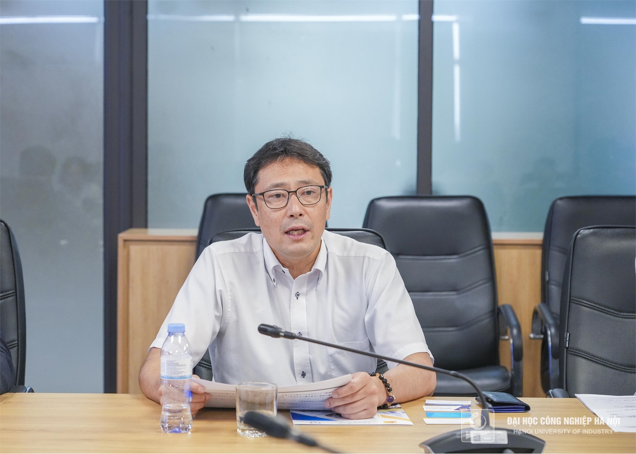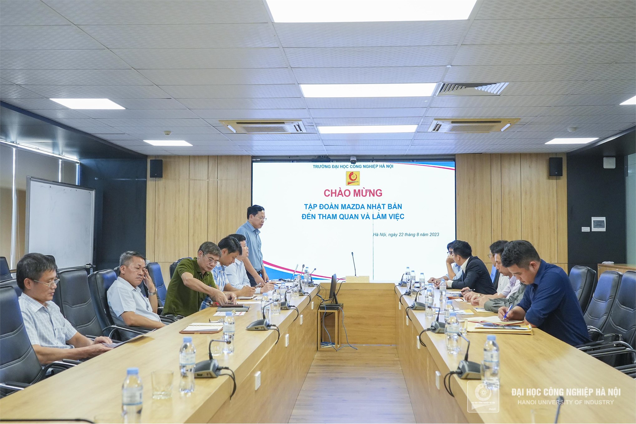 Phát biểu tại buổi làm việc, TS.Kiều Xuân Thực - Hiệu trưởng nhà trường cảm ơn Tập đoàn Mazda đã quan tâm, tin tưởng chọn Đại học Công nghiệp Hà Nội để hợp tác, đồng thời chia sẻ những thành tựu quan trọng trong quá trình phát triển của trường, đặc biệt là thế mạnh đào tạo trong ngành cơ khí, ô tô, điện, điện tử…..