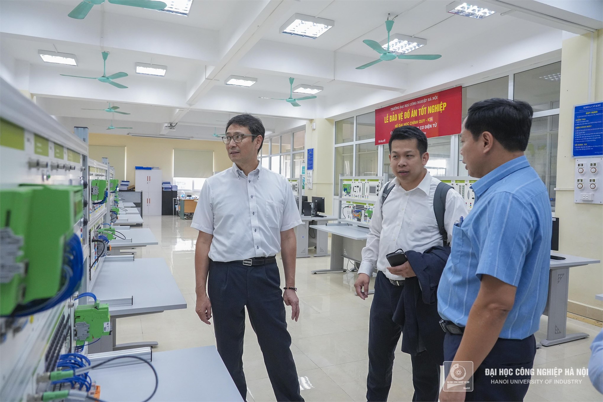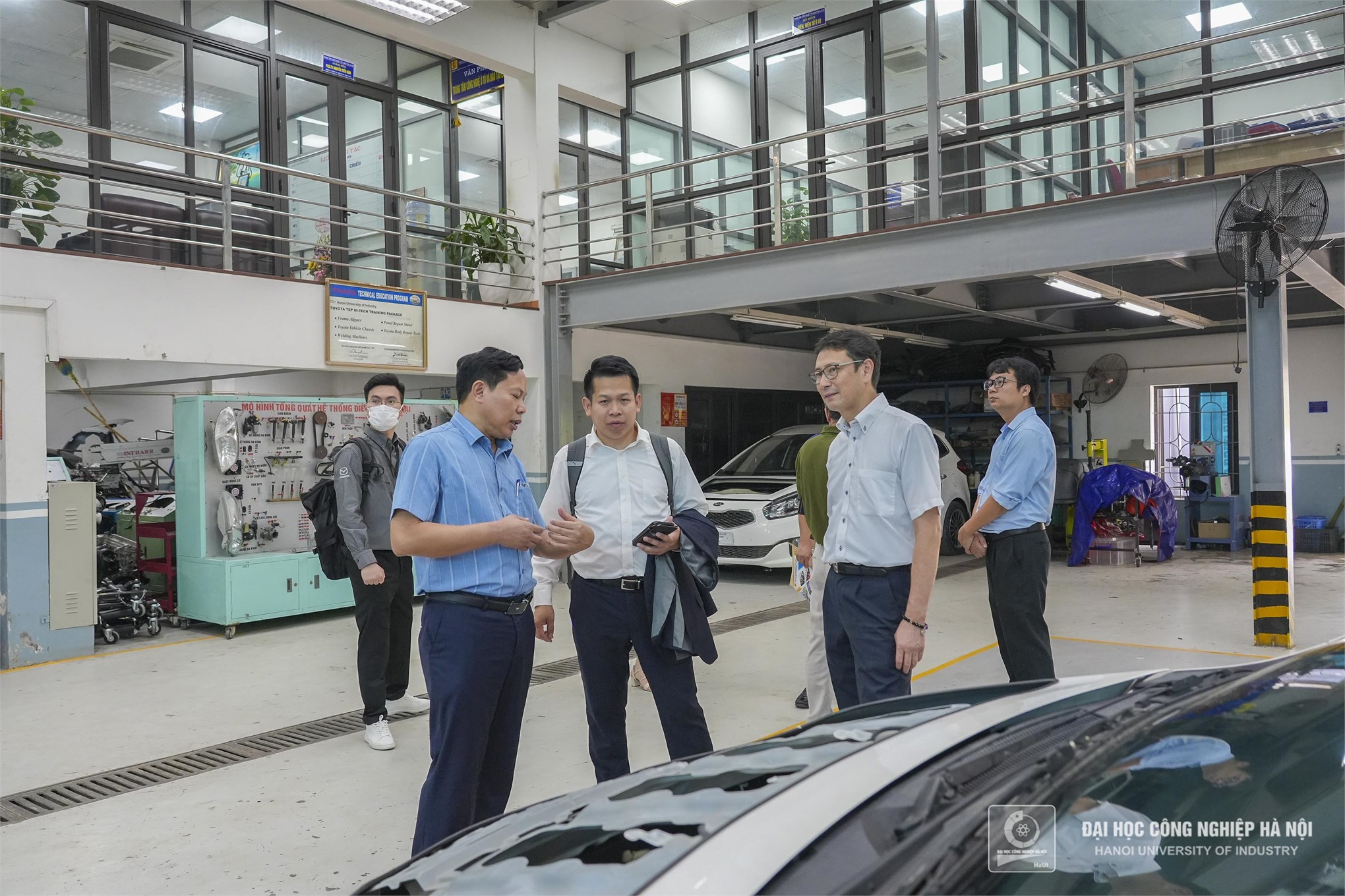 Kết thúc buổi làm việc, đại diện Tập đoàn Maza dành thời gian đi tham quan cơ sở vật chất Trường Cơ khí - Ô tô, Khoa Điện, Trung tâm Việt Nhật, Trung tâm Công nghệ ô tô và đào tạo lái xe.
