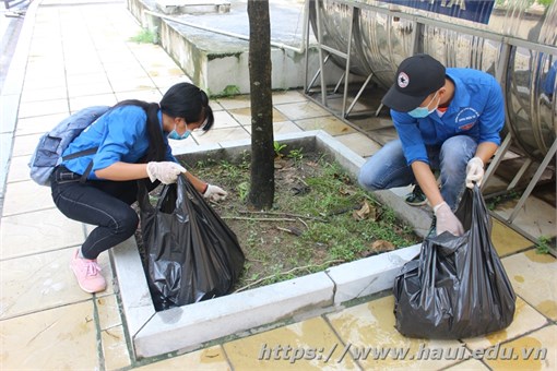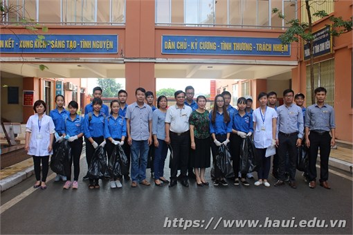Buổi ra quân thu hút nhiều cán bộ, giảng viên và sinh viên nhà trường với sự tham gia trực tiếp của Tiến sĩ Bùi Thị Ngân –Phó Hiệu trưởng, đại diện Trạm Y tế, Phòng Quản trị, Trung tâm Quản lý Ký túc xá và đông đảo đoàn viên, thanh niên tình nguyện của Trường.