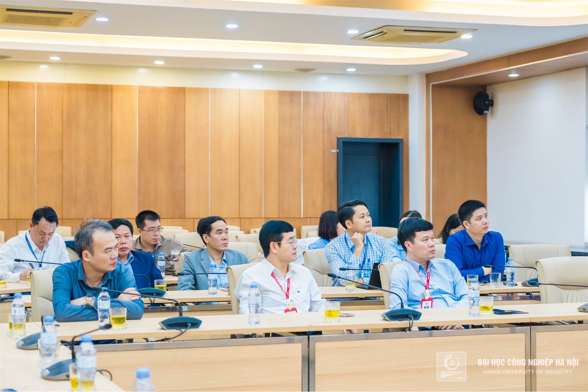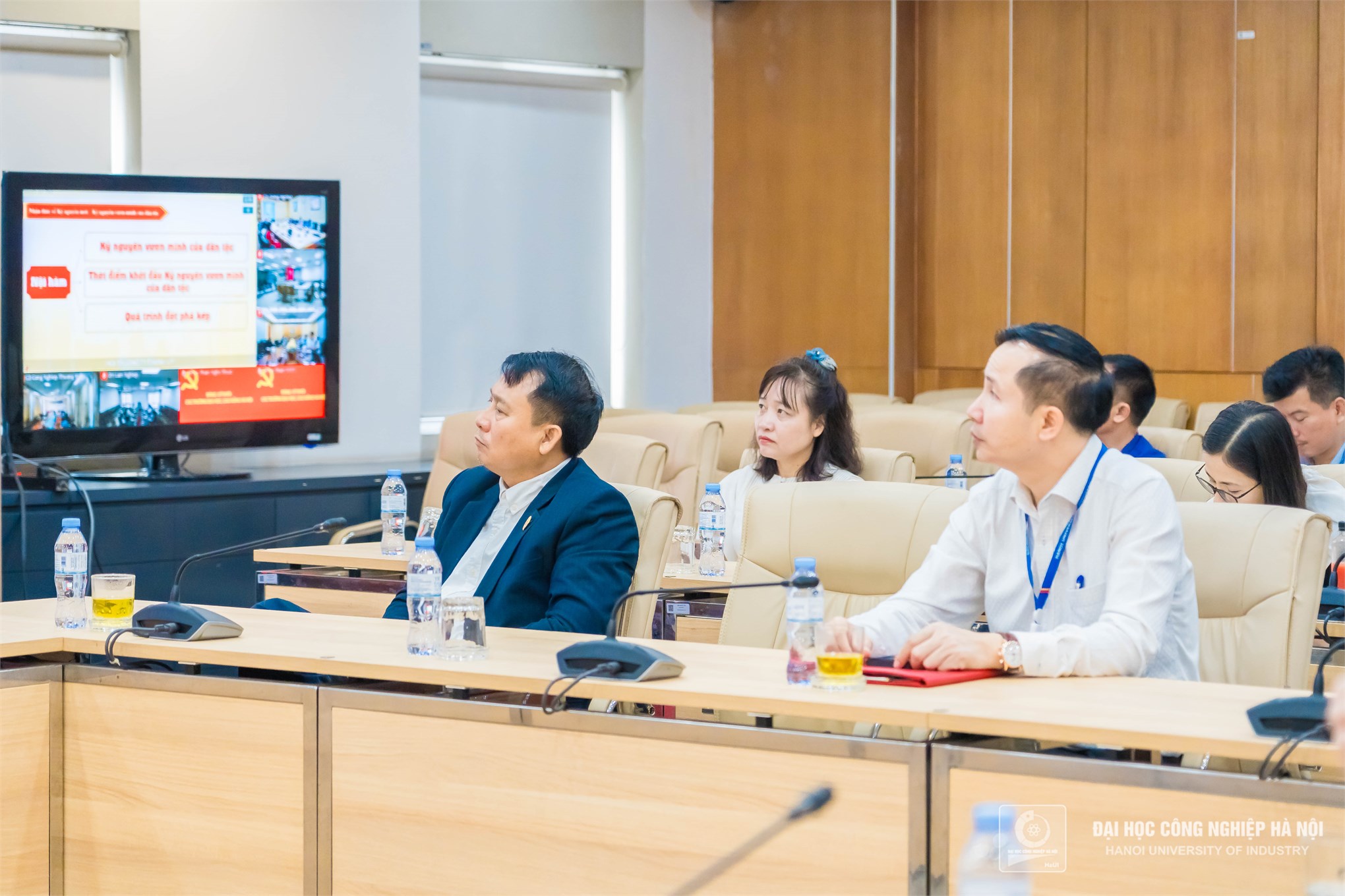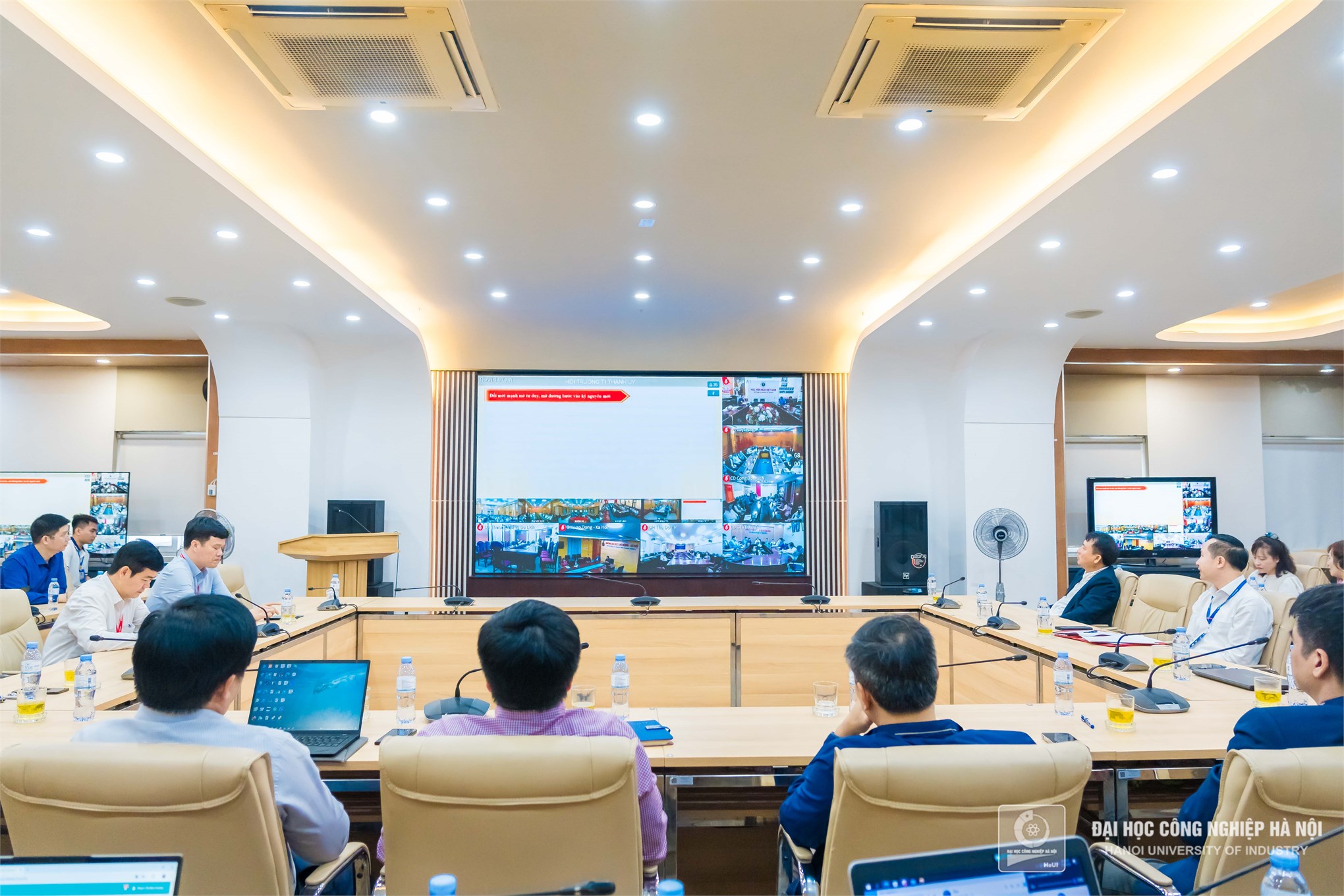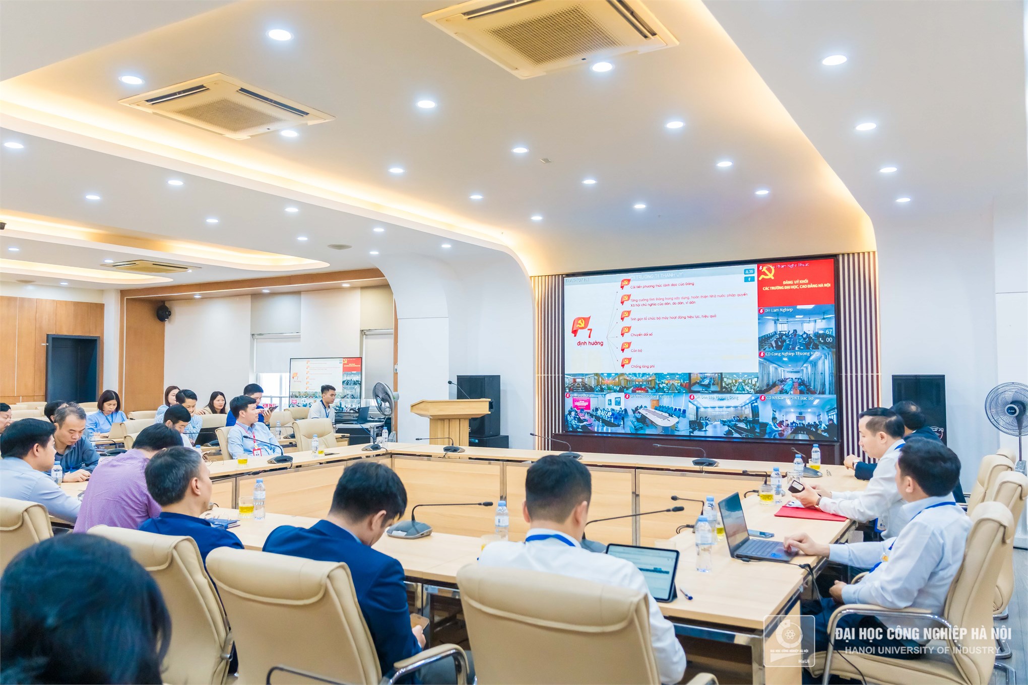 Đồng chí Lê Hồng Quân, Bí thư Đảng uỷ, đồng chí Kiều Xuân Thực, Hiệu trưởng cùng các đồng chí uỷ viên BCH đảng bộ Trường Đại học Công nghiệp Hà Nội, BCH các đảng bộ bộ phận và Bí thư các chi bộ tham dự hội nghị trực tuyến.