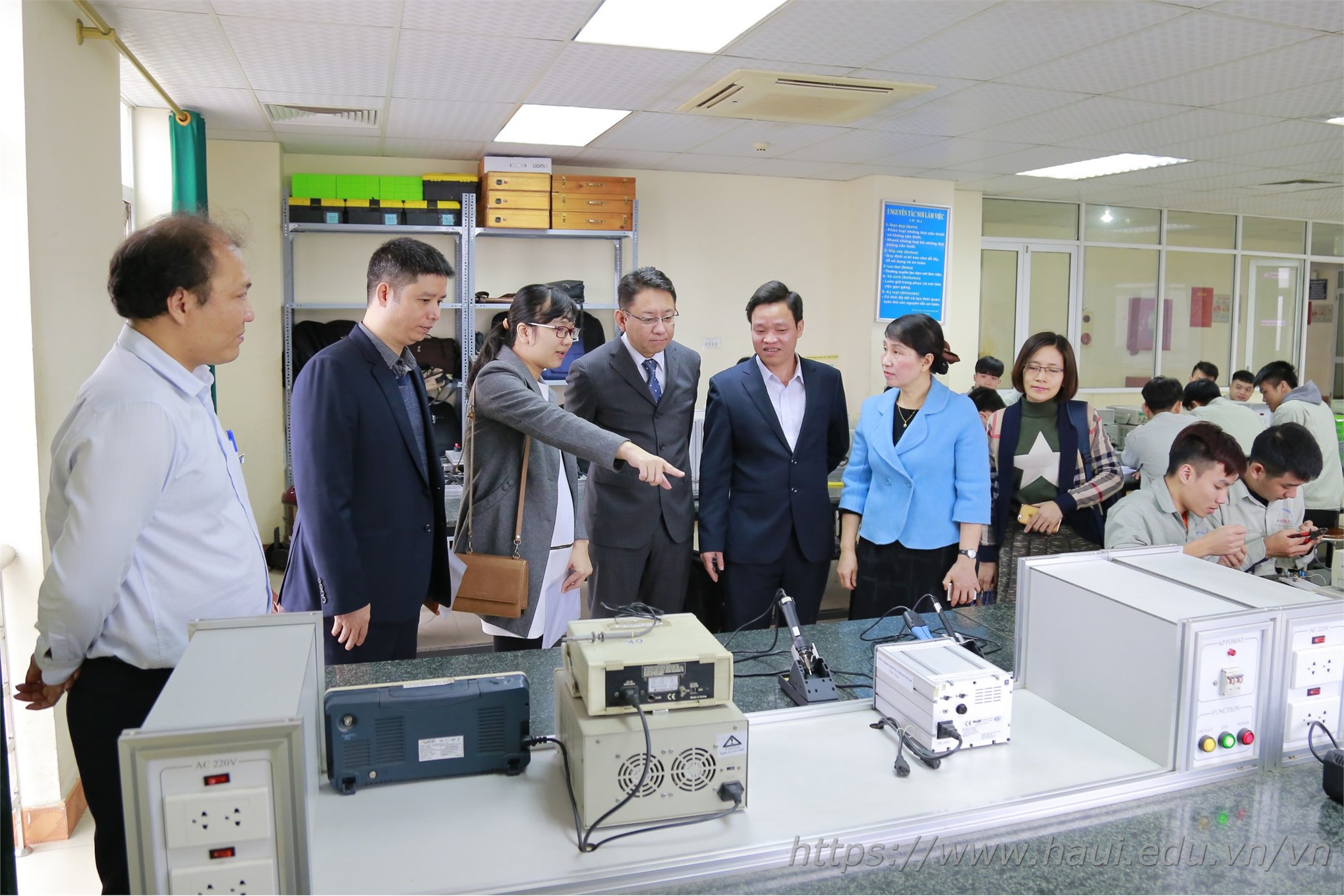Đoàn tham quan phòng thực hành khoa Điện tử