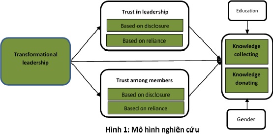 Trong hơn 100 công bố quốc tế của cán bộ, giảng viên Đại học Công nghiệp Hà Nội năm 2018, chúng tôi đặc biệt quan tâm đến nghiên cứu của TS. Lê Ba Phong, giảng viên khoa Quản lý Kinh doanh, với tựa đề: “The mediating role of trust in stimulating the relationship between transformational leadership and knowledge sharing processes” (Vai trò trung gian của niềm tin trong việc thúc đẩy mối quan hệ giữa lãnh đạo chuyển đổi và các quá trình chia sẻ tri thức). Mô hình nghiên cứu đề xuất được minh họa trong Hình 1.