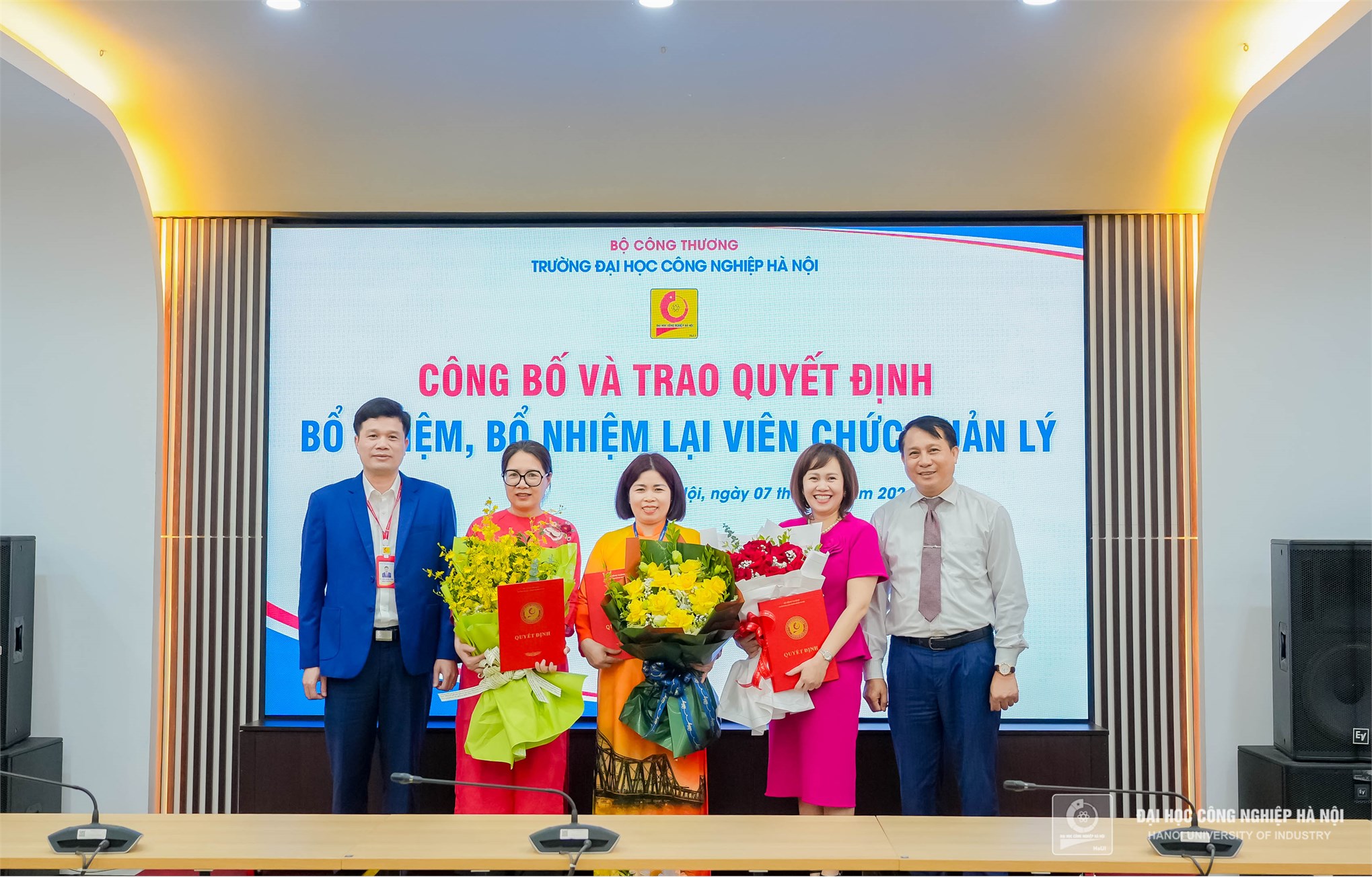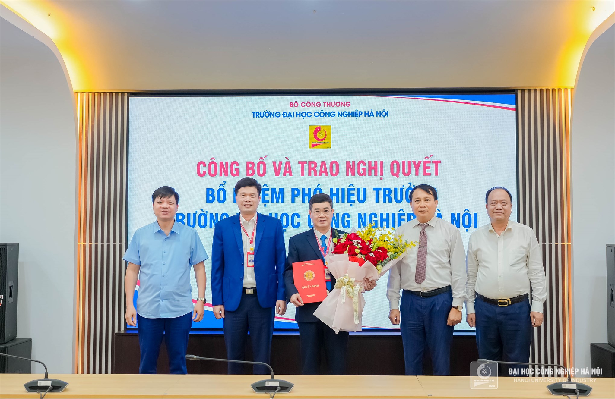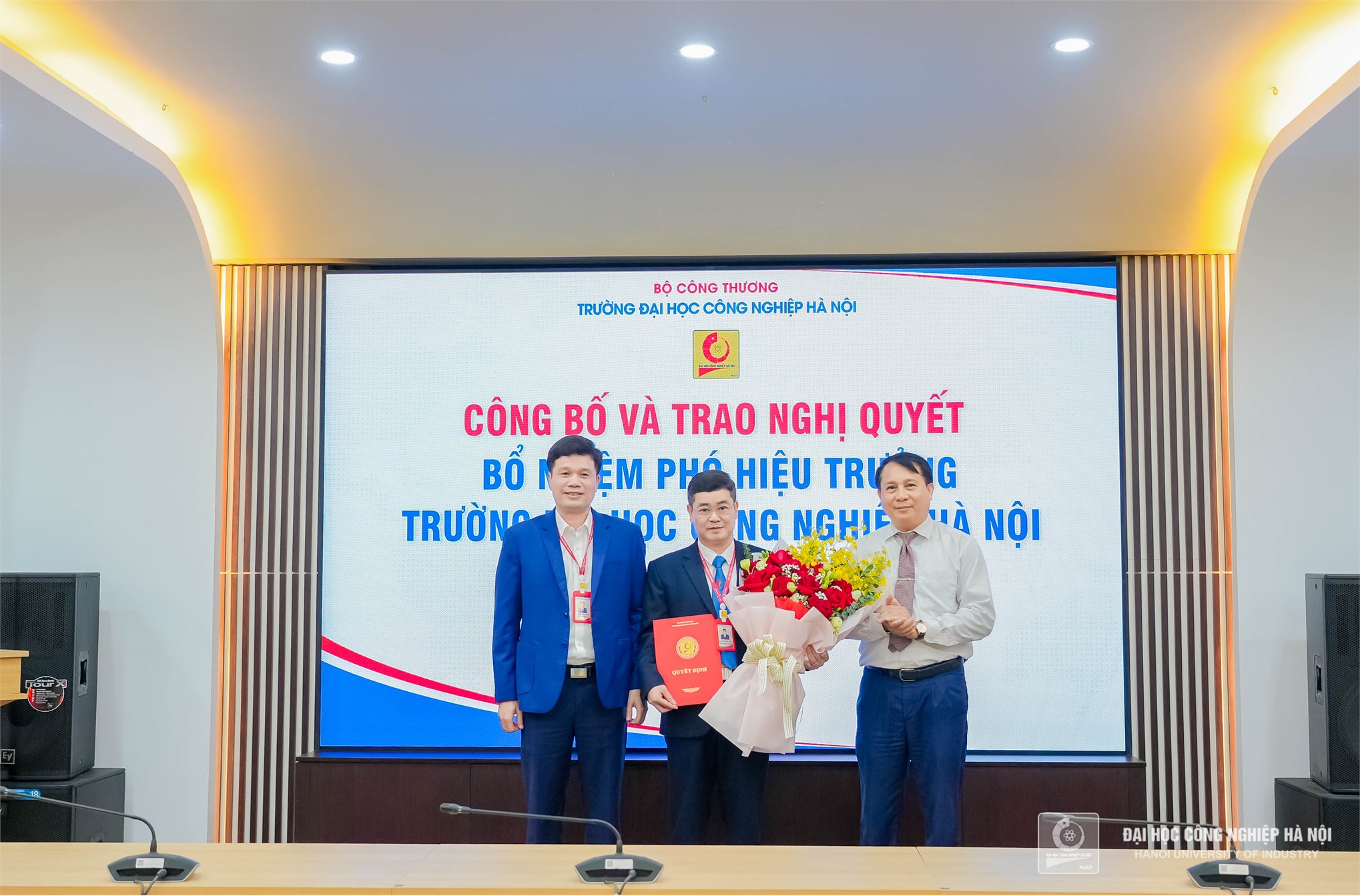 Hiệu trưởng Đại học Công nghiệp Hà Nội TS.Kiều Xuân Thực chúc mừng TS.Nguyễn Văn Thiện được Nhà trường tin tưởng giao nhiệm vụ mới và mong muốn các cán bộ được bổ nhiệm, bổ nhiệm lại tiếp tục nỗ lực, chủ động, sáng tạo, nâng cao hiệu quả quản lý, đoàn kết cùng tập thể hoàn thành xuất sắc nhiệm vụ được giao, đóng góp hoàn thành mục tiêu chiến lược trong thực hiện chuyển đổi mô hình quản trị và quốc tế hóa giáo dục.