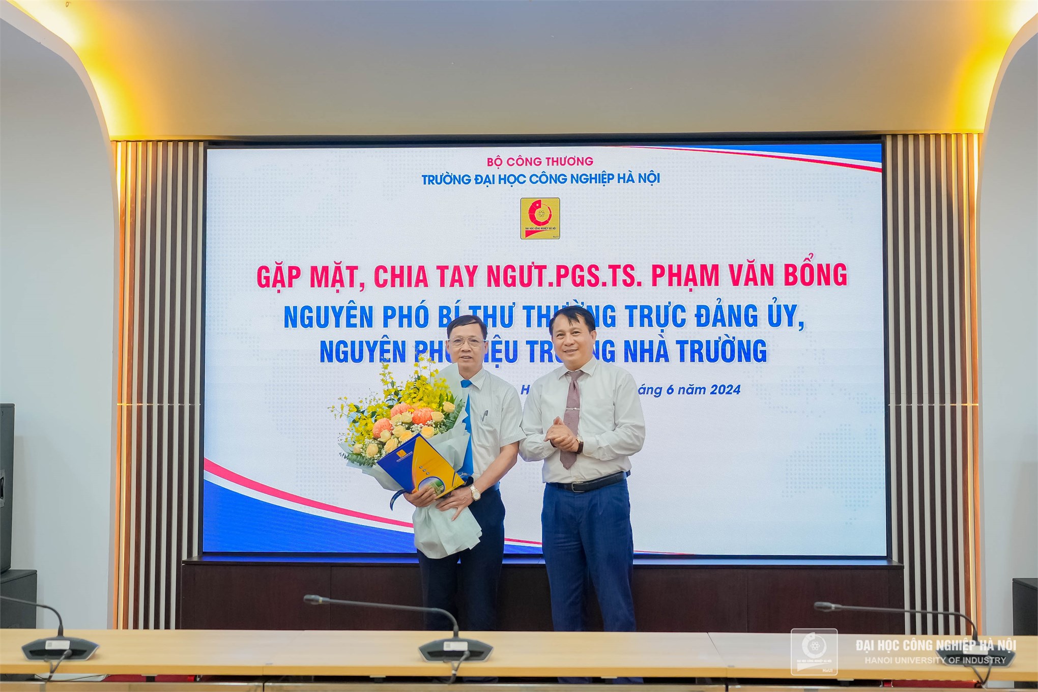 PGS.TS. Phạm Văn Bổng xúc động chia sẻ: 39 năm gắn bó với ngôi nhà chung Đại học Công nghiệp Hà Nội, chứng kiến hành trình phát triển với bao khó khăn, thách thức, với những bứt phá vượt bậc,…tràn ngập trong tôi là cảm xúc hạnh phúc và tự hào về những thành tựu của nhà trường, về đồng nghiệp, về học trò,…tất cả sẽ thành ký ức, thành kỷ niệm sưởi ấm cuộc sống của tôi; nơi đây sẽ mãi là ngôi nhà chung, nơi tôi sẽ đồng hành, dõi theo và gửi gắm niềm tin với tình cảm trân trọng. Tôi dành 2 từ “chia sẻ” và“cảm ơn” để gửi đến các đồng chí lãnh đạo, cán bộ quản lý, viên chức, người lao động và sinh viên nhà trường. Xin chia sẻ, cảm thông vì những điều tôi chưa thực hiện được trọn vẹn, như mong đợi, kỳ vọng và tôi cảm ơn vì sự tin yêu, đồng hành, hỗ trợ tôi của lãnh đạo nhà trường, của đồng nghiệp của học trò để tôi hoàn thành nhiệm vụ trong suốt hành trình thực hiện sứ mệnh giáo dục đào tạo. Tôi tin rằng, chắc chắn Đại học Công nghiệp Hà Nội sẽ phát triển vững mạnh và hội nhập thành công.