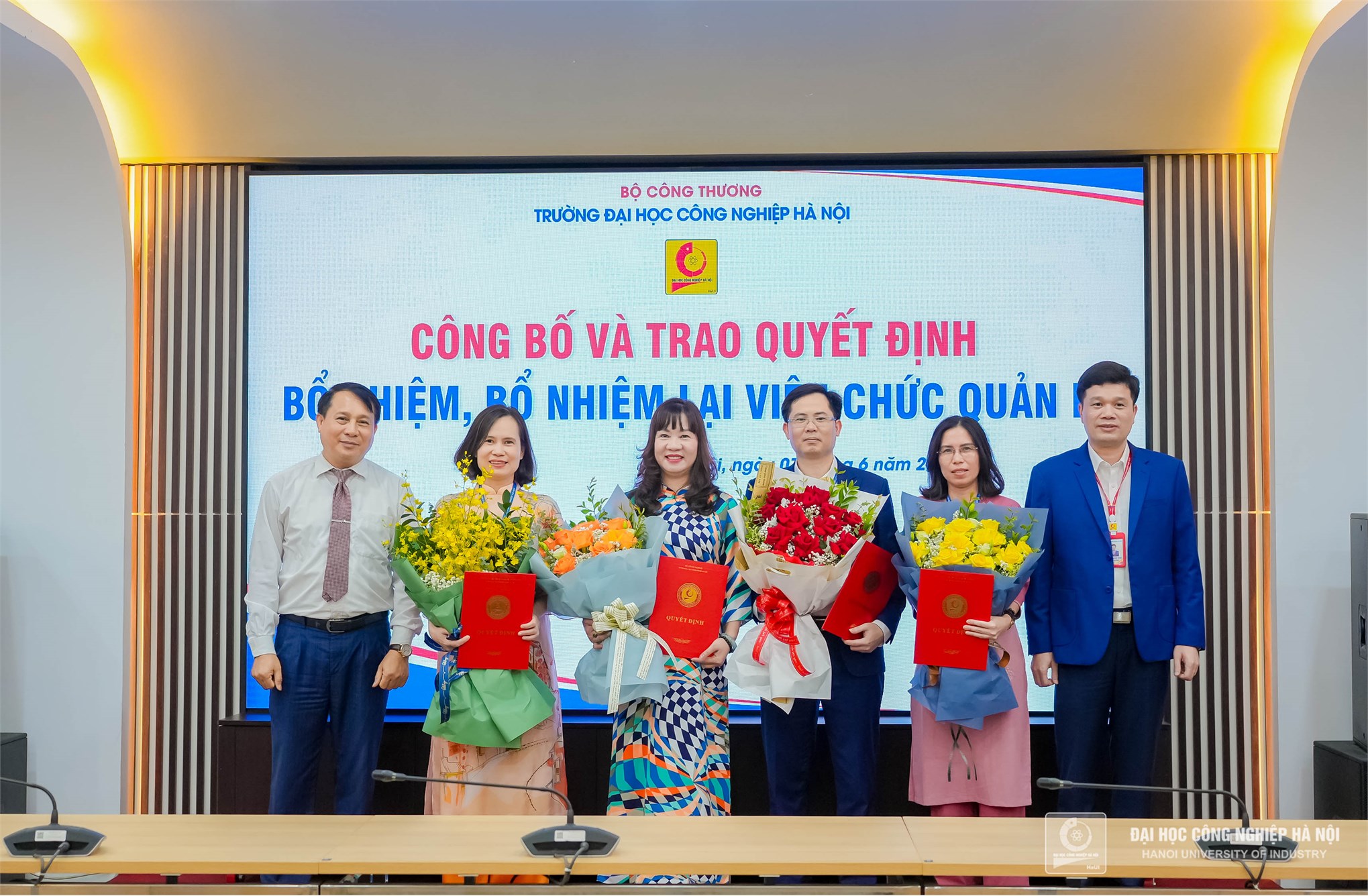 Chiều 7/6, PGS.TS Lê Hồng Quân, Bí thư Đảng ủy, Chủ tịch Hội đồng trường và Hiệu trưởng Đại học Công nghiệp Hà Nội TS.Kiều Xuân Thực chủ trì buổi lễ trao quyết định về công tác cán bộ. Tham dự lễ trao quyết định còn có các đồng chí trong Đảng ủy, Ban Giám hiệu, Chủ tịch Công đoàn, Bí thư Đoàn thanh niên, trưởng, phó các đơn vị thuộc, trực thuộc Nhà trường.