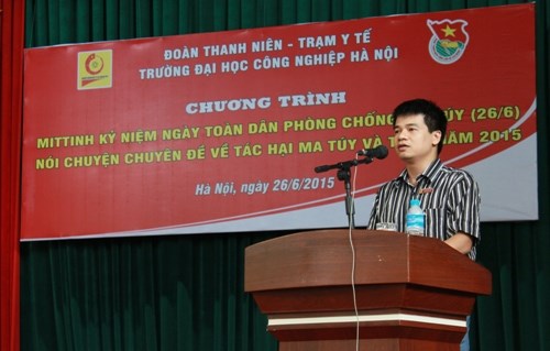 Tại buổi mitting, đồng chí Trần Ngọc Khánh - Bí Thư đoàn Trường đã báo cáo: các tổ chức chi đoàn, liên chi đoàn trong toàn trường liên tục đẩy mạnh tuyên truyền tác hại ma túy, tệ nạn xã hội, xen kẽ với nhiều nội dung học tập với hình thức đa dạng. Cũng trong năm học này Đoàn trường đã ra mắt Câu lạc bộ tuyên truyền phòng chống ma túy, đã hoạt động được một thời gian và đạt kết quả nhất định.