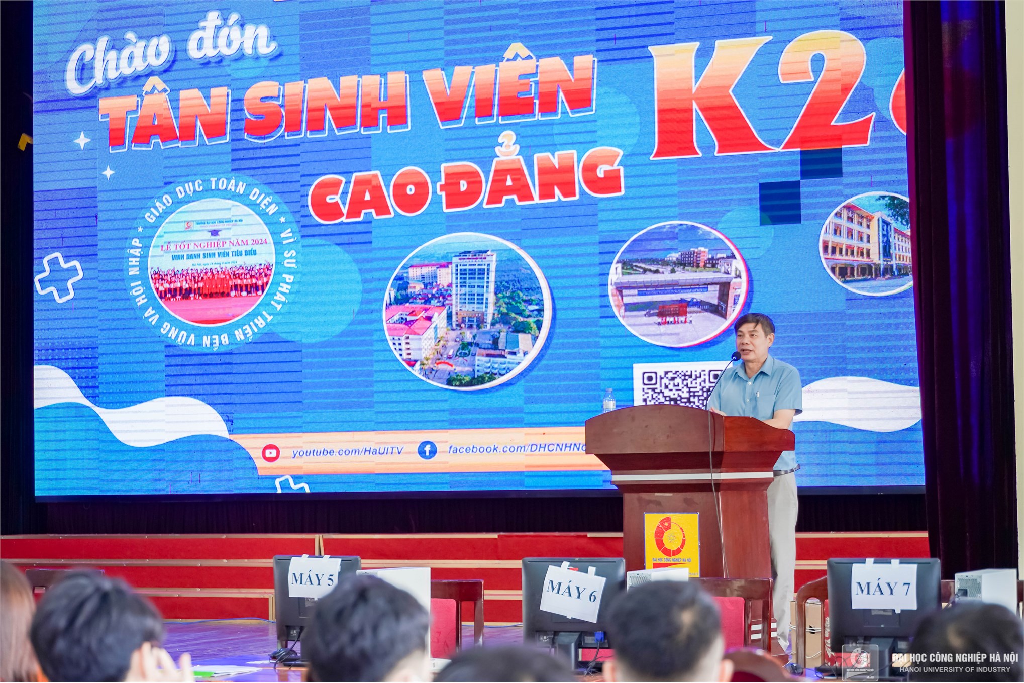 PGS.TS. Nguyễn Tiến Hán – Giám đốc Trung tâm Công nghệ Ô tô và Đào tạo lái xe chúc mừng các tân sinh viên mới nhập học. Thầy nhấn mạnh: Các thầy, các cô ở Đại học Công nghiệp Hà Nội sẽ luôn hỗ trợ, đồng hành và giúp đỡ các em trong suốt quá trình học tập. Nhiệm vụ của các em là tích lũy kiến thức, kỹ năng để có một hành trang vững chắc lập thân, lập nghiệp trong tương lai.